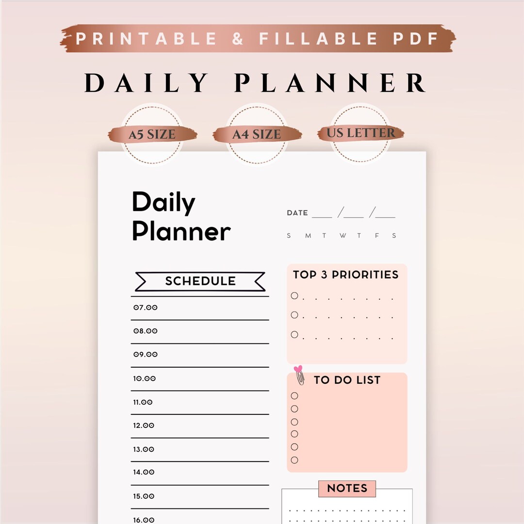 Printable Daily Planner Digital Daily Planner PDF Planner Editable