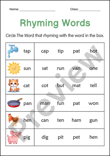 Printable Rhyming Words Activities Worksheets First Grade Phonics