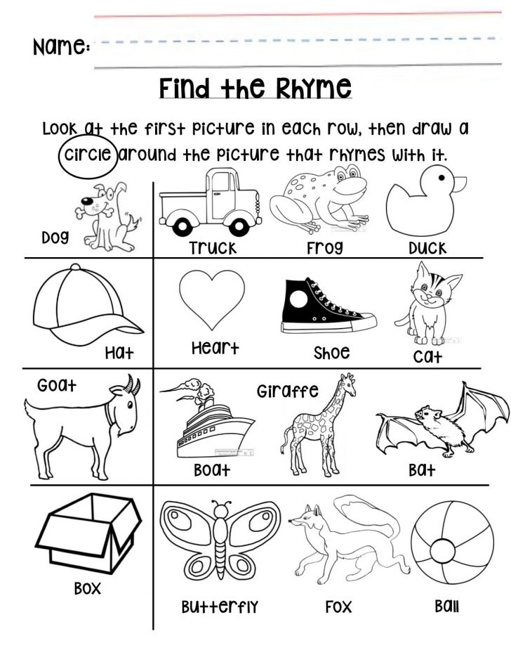 Free Kindergarten Worksheets Find Rhyming Words Rhyming words
