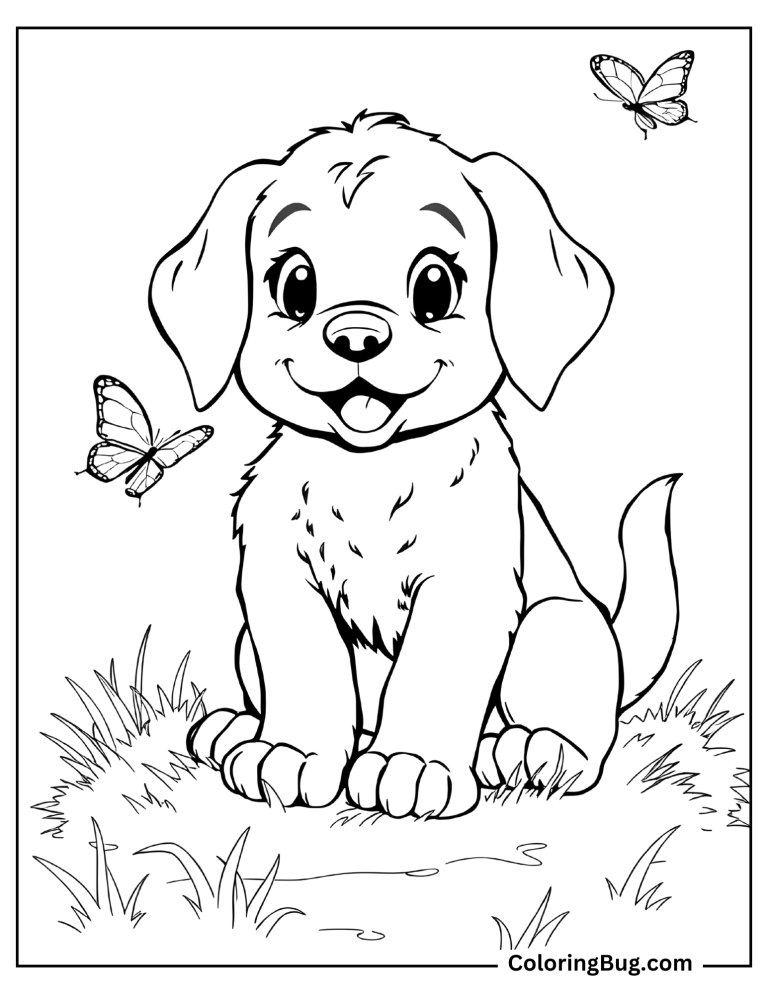 Download Cute Puppy with Butterflies Coloring pages Online Creative
