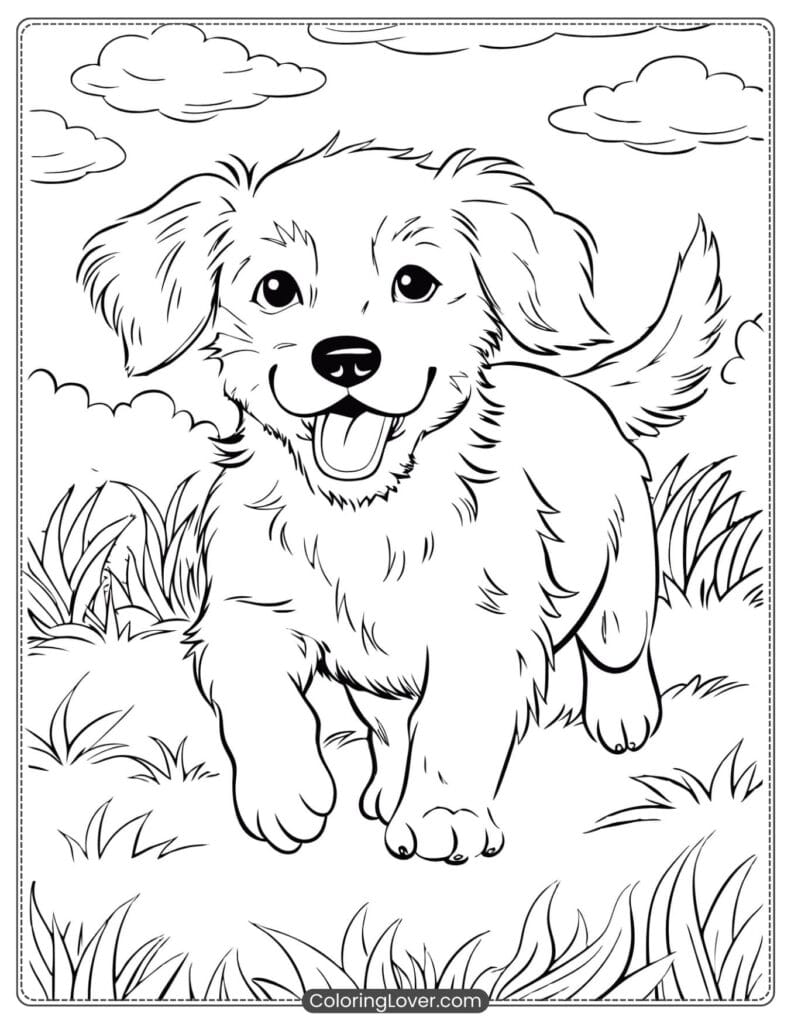 Free Cute puppy running coloring page 2023
