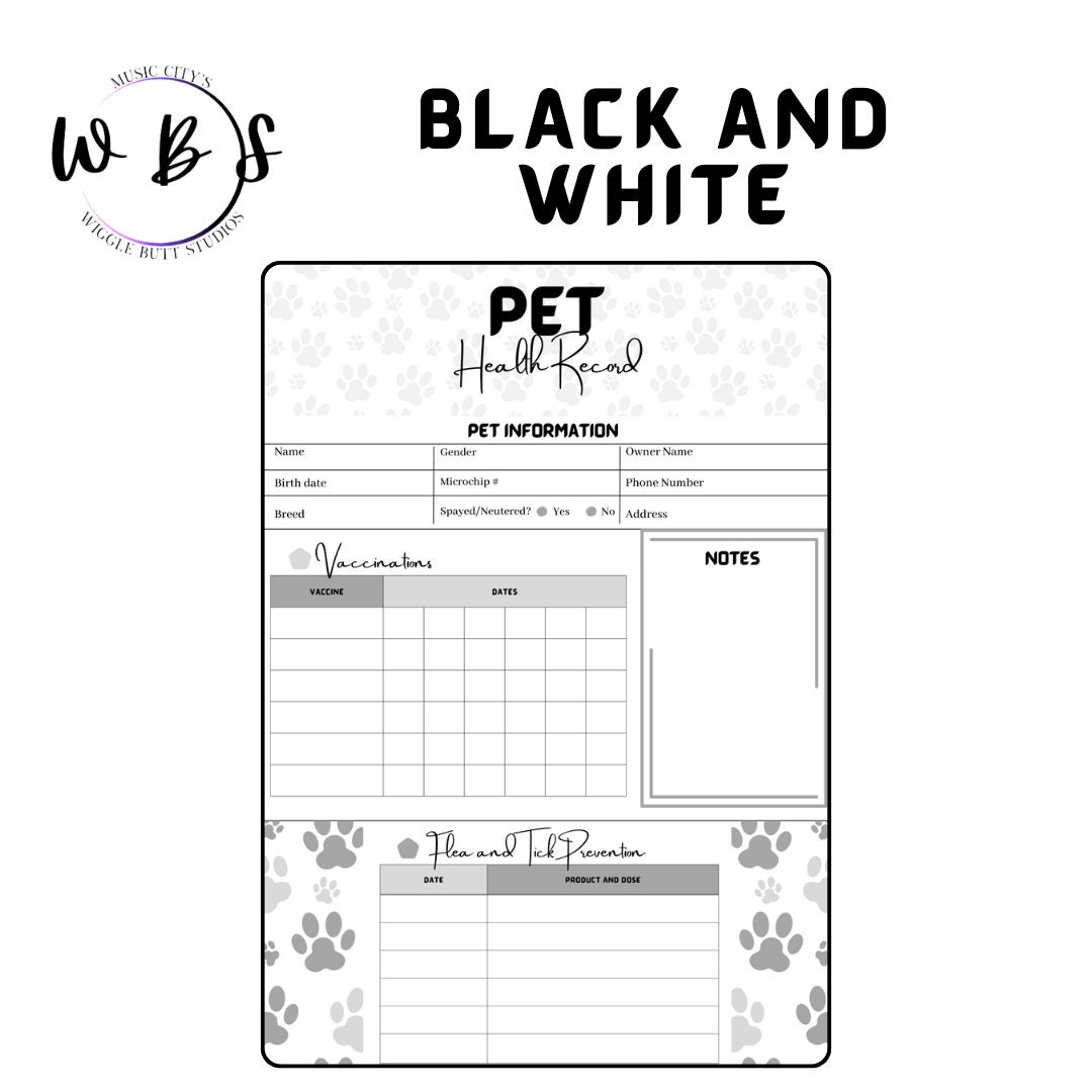 Printable Pet Health Record Bundle Puppy Health Record Pet