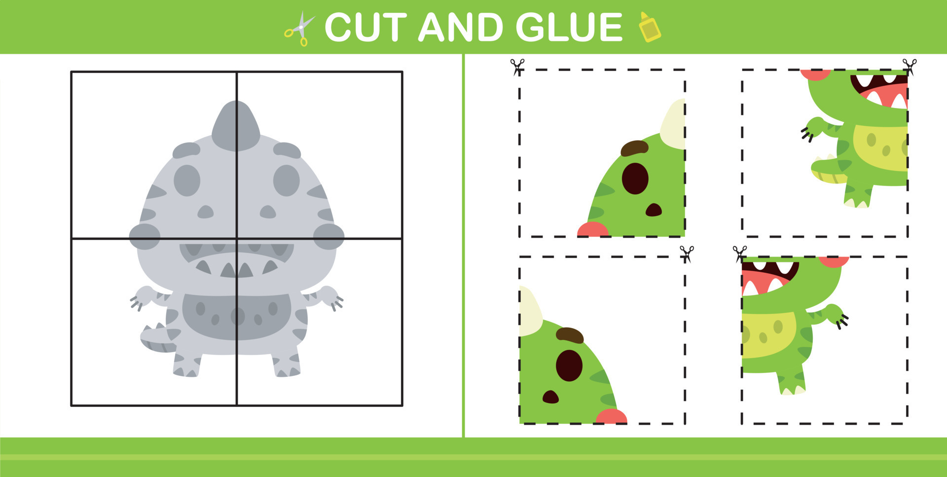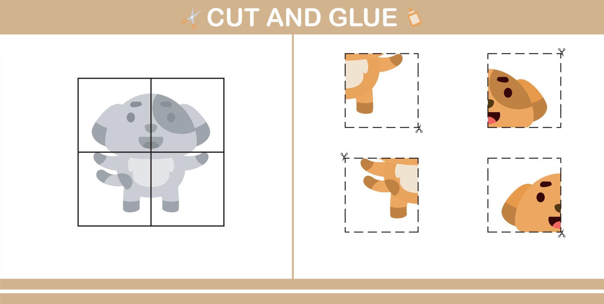 Cut and Glue of cute dog education game for kids age 5 and 10 Year Old