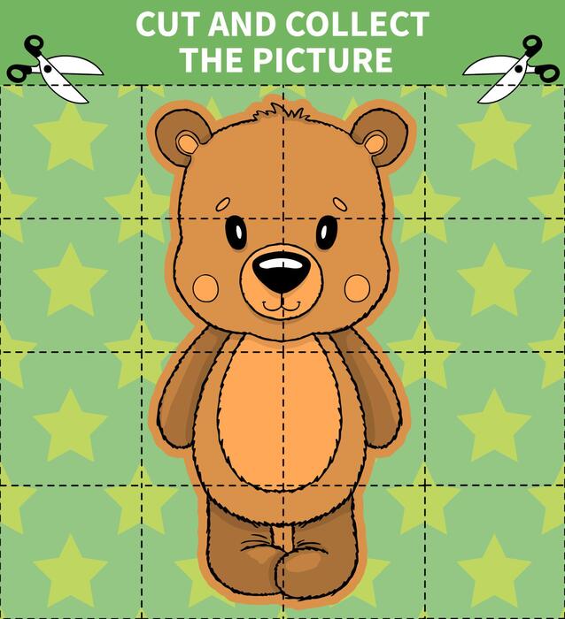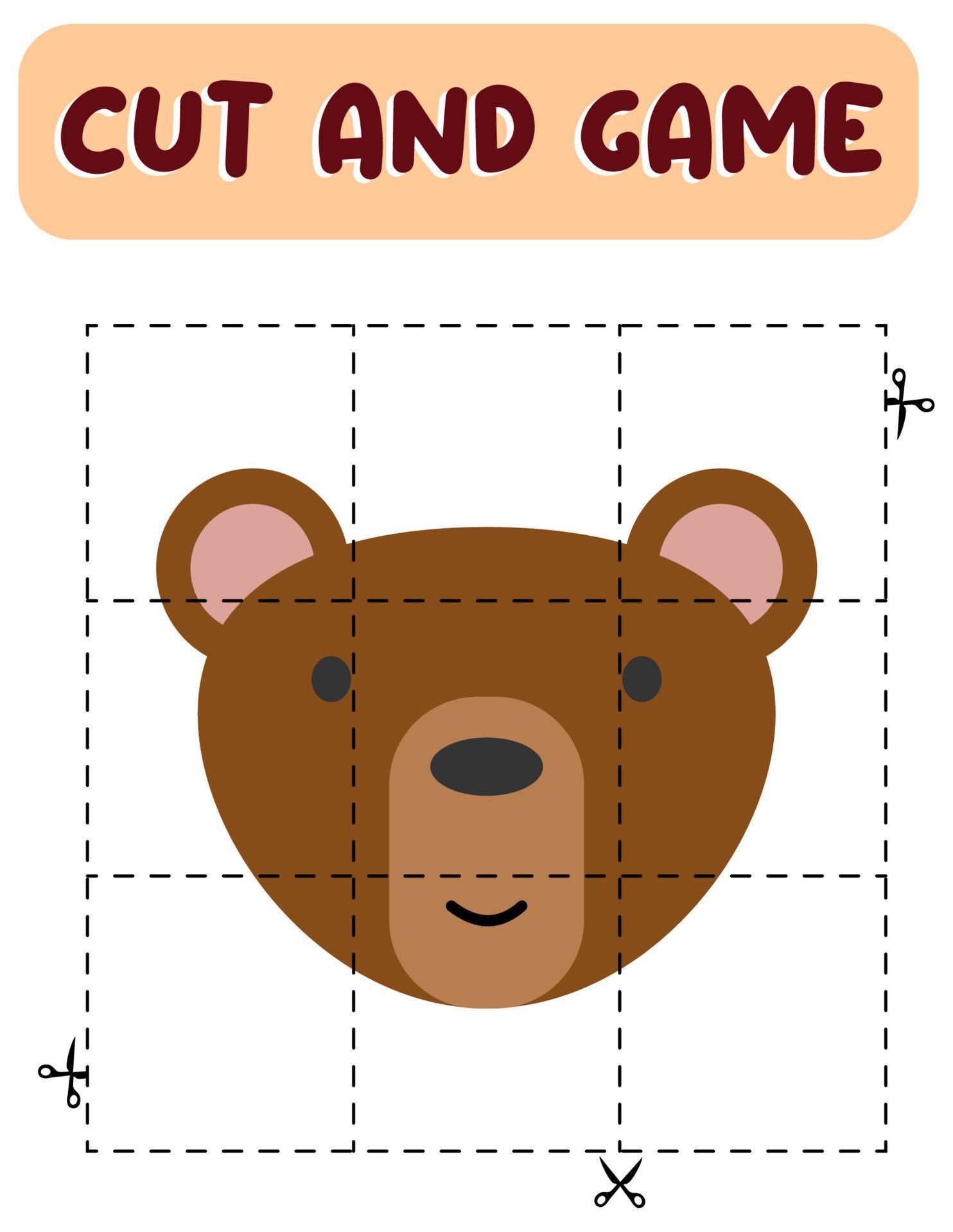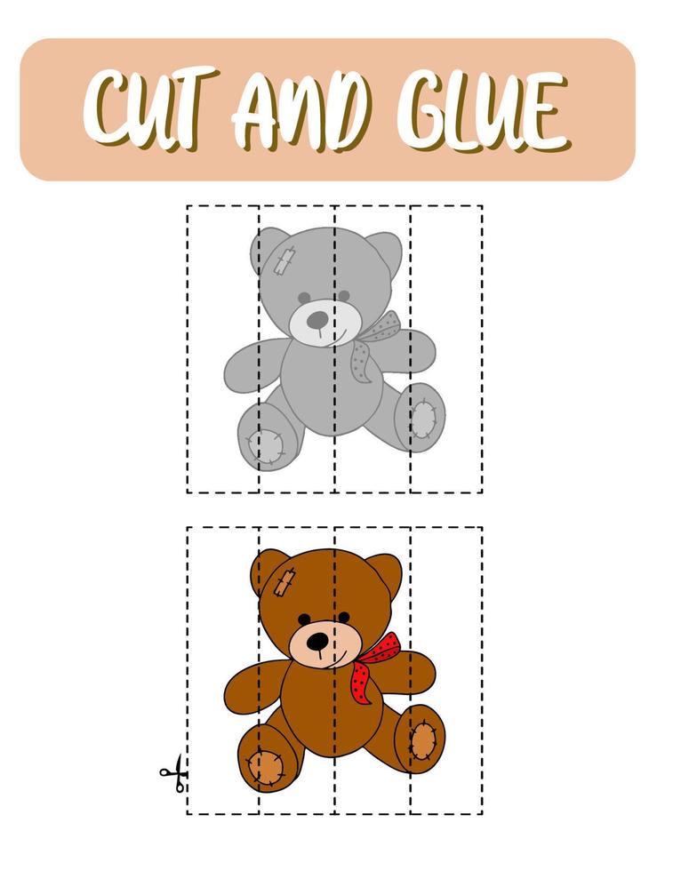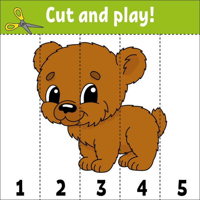 Cut and glue game for kids Bear puzzles Children funny entertainment