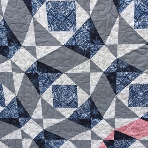 Storm at Sea Quilt Wallhanging Couch Throw Navy Blue White Pink