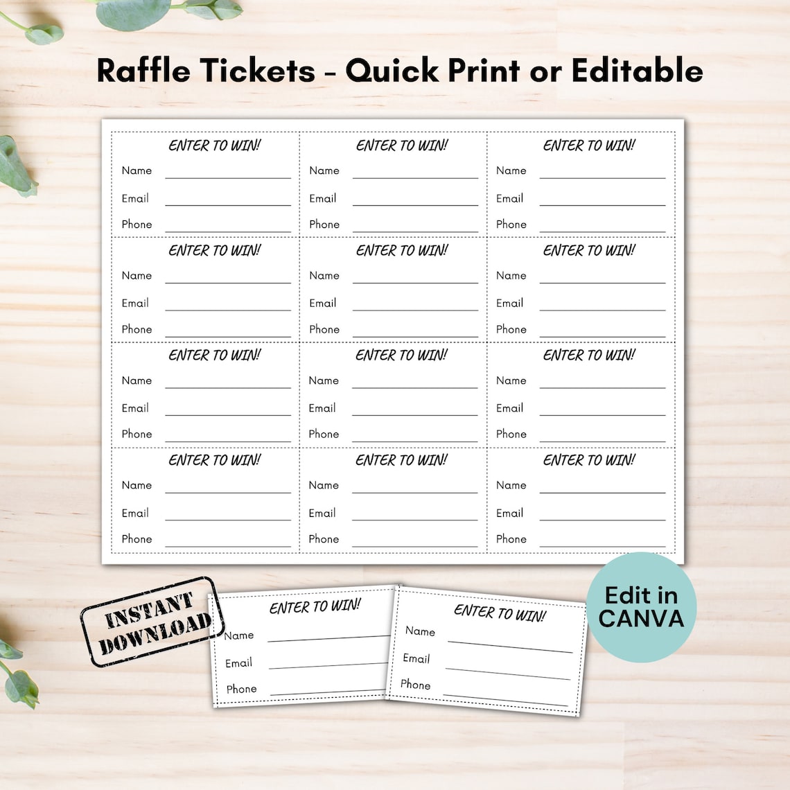 Printable Raffle Tickets (12 Tickets) Instant Download Etsy