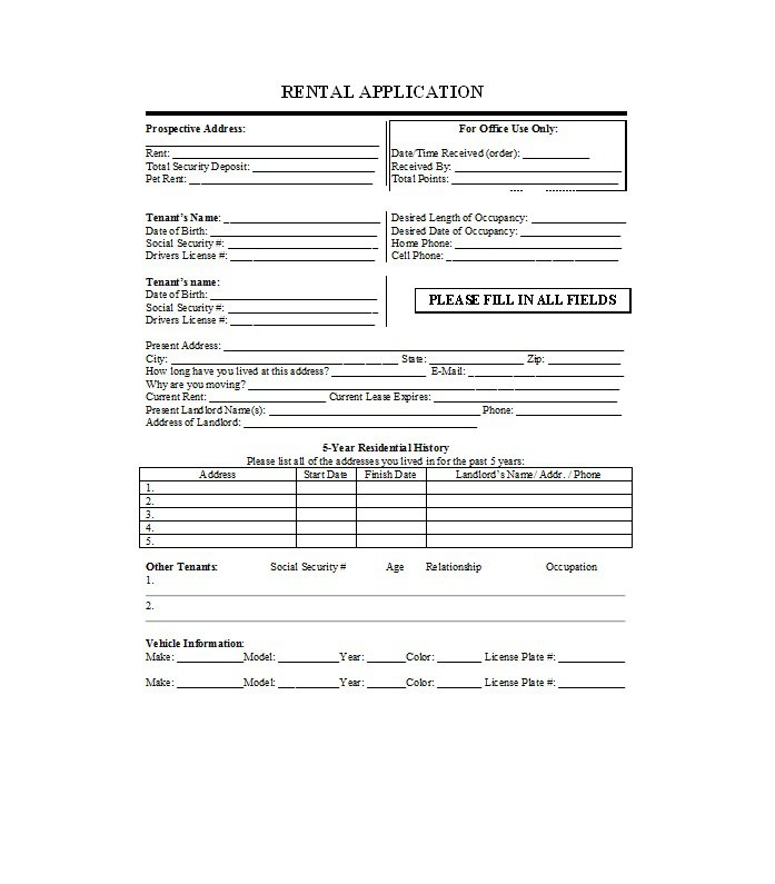 42 Simple Rental Application Forms 100% FREE TemplateLab