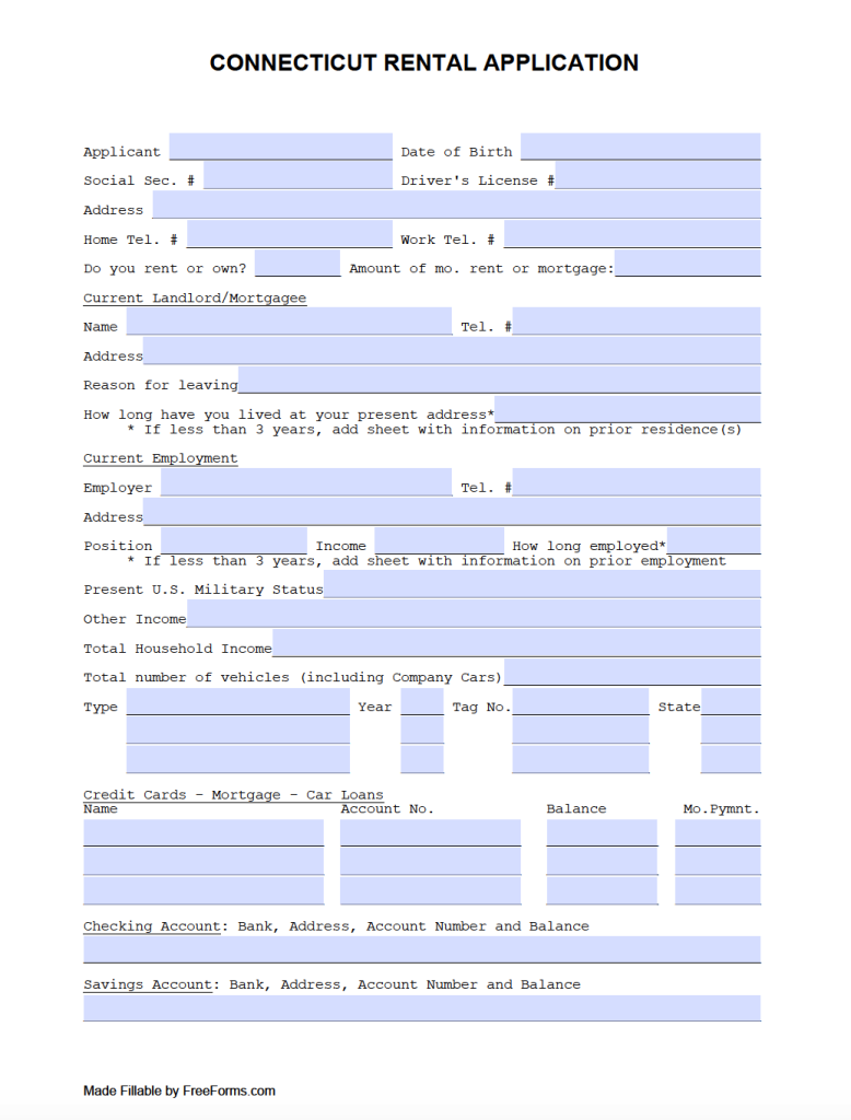 Free Connecticut Residential Rental Application Form PDF