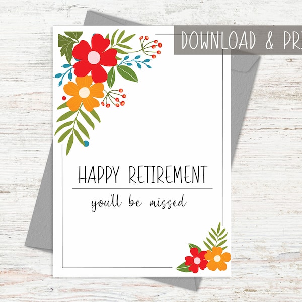Printable Happy Retirement Card in Sizes 7x5 A2 Retirement Congrats