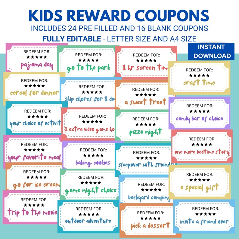 Editable and Easy to Use Printable Reward Coupons for Kids