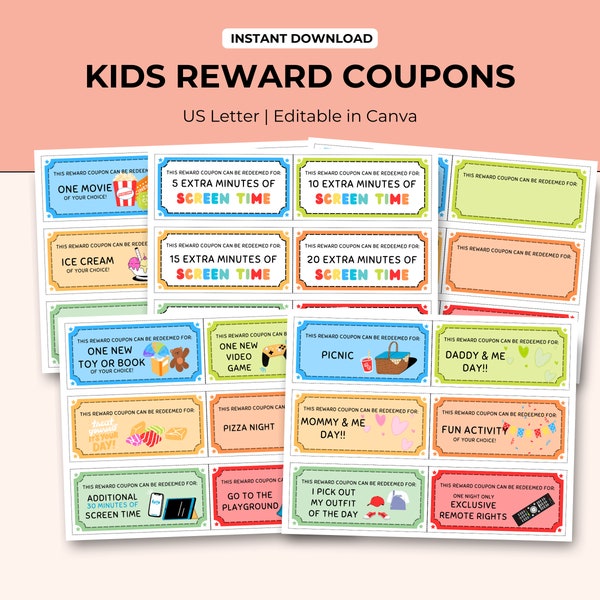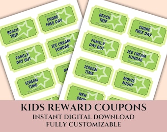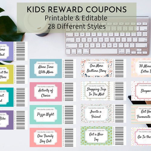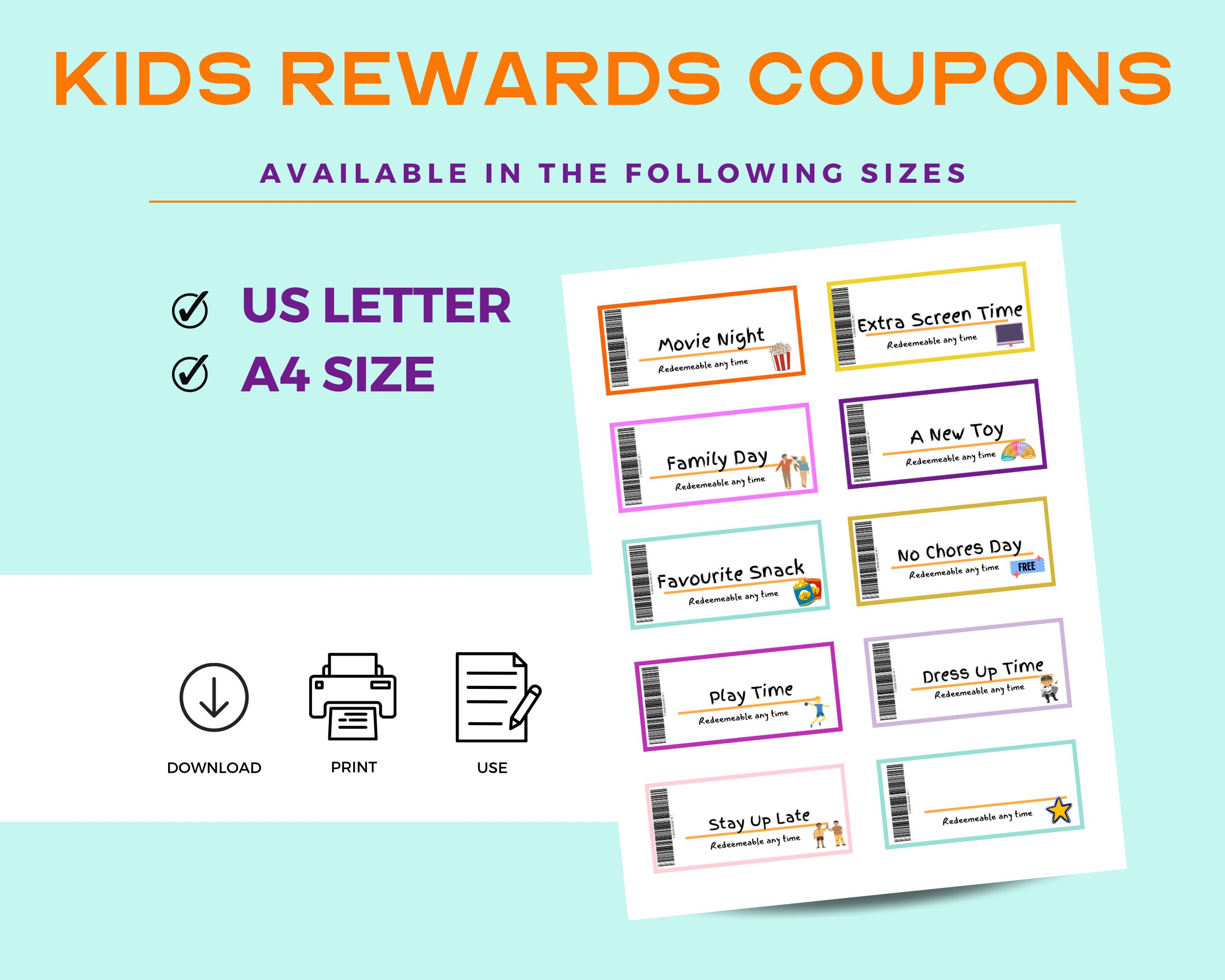 Printable Kids Reward Coupons Editable Reward Coupons Etsy