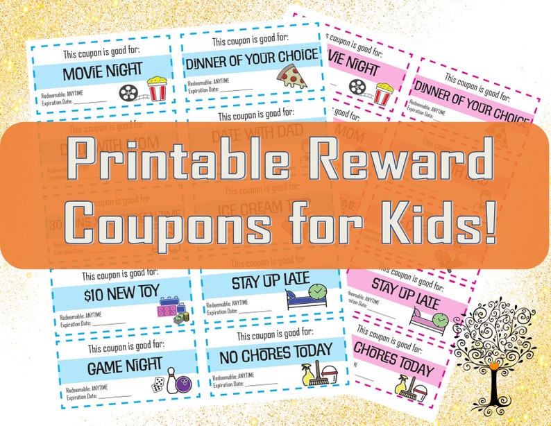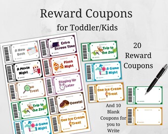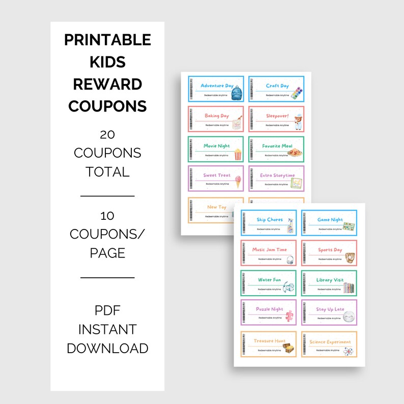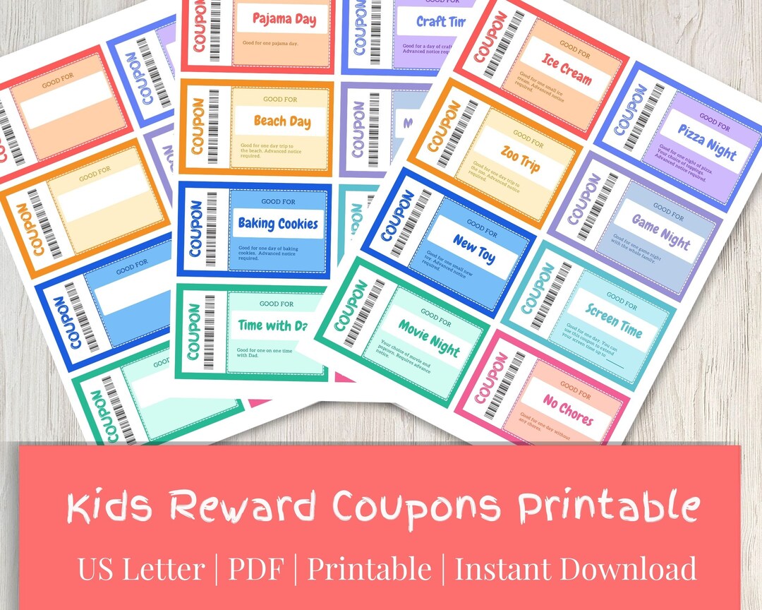 Printable Kids Reward Coupons Downloadable Incentives 20 Coupons for