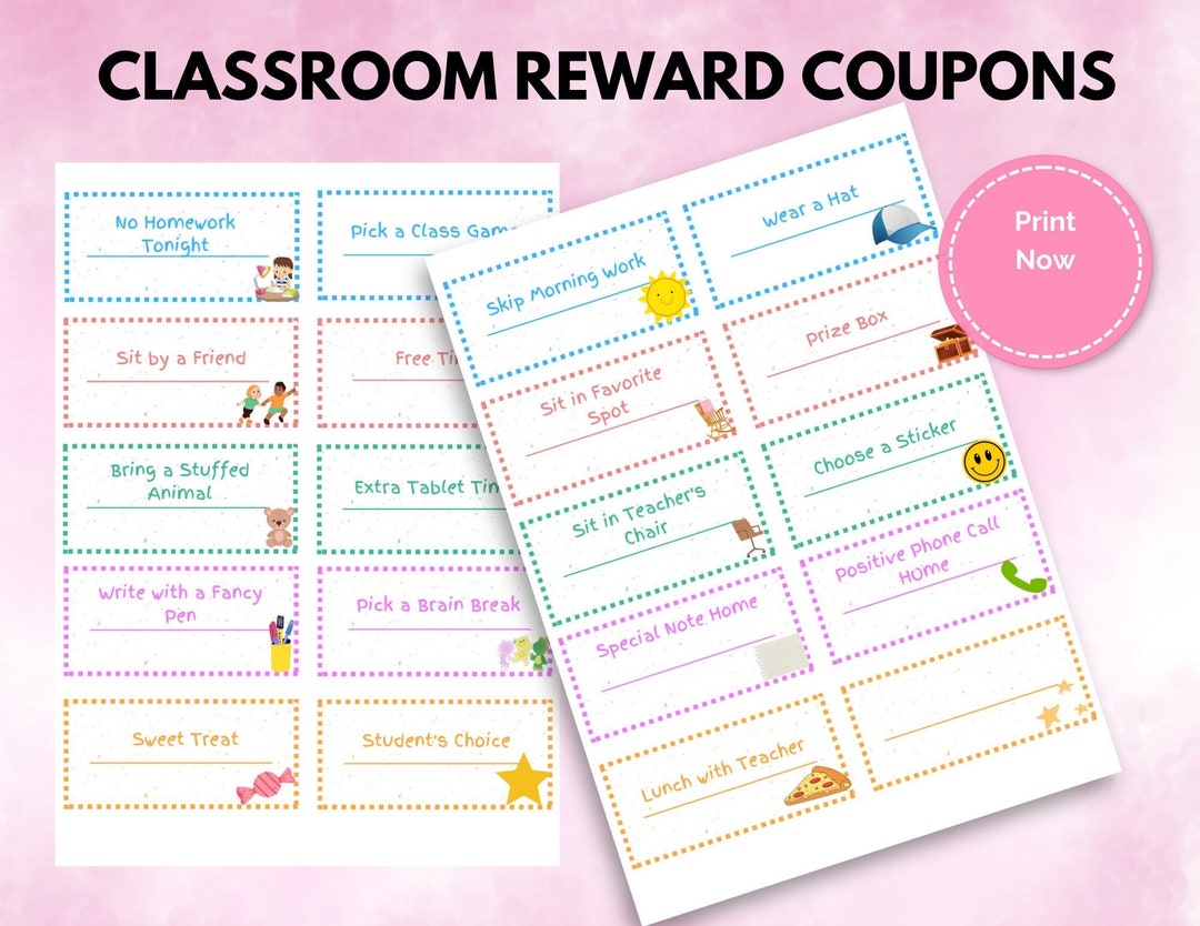 Classroom Reward Coupons Printable Encourage Positive Behavior