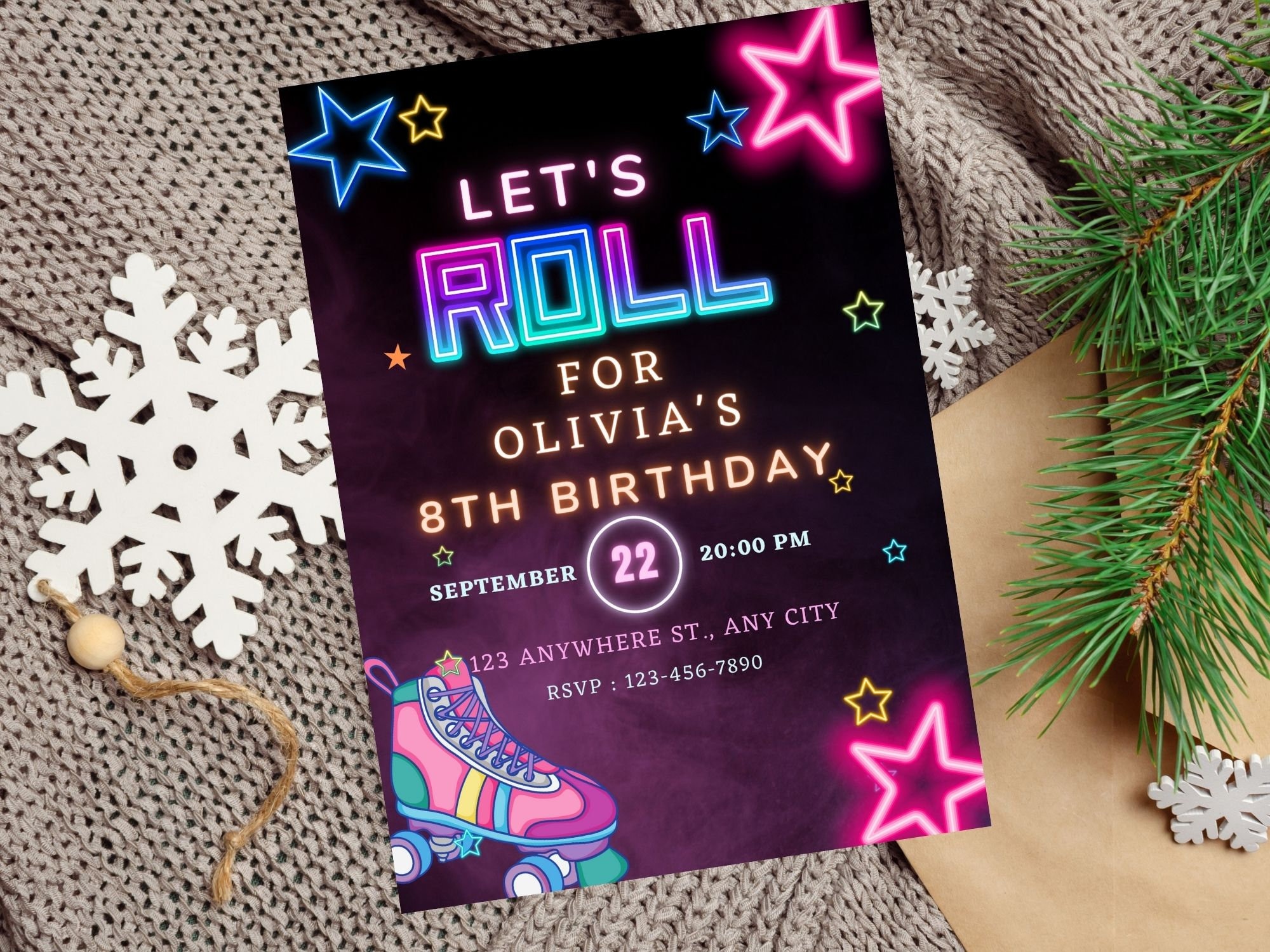 Roller Skate Birthday Invitation Editable in Canva Roller Skating