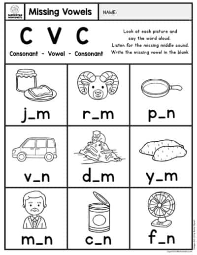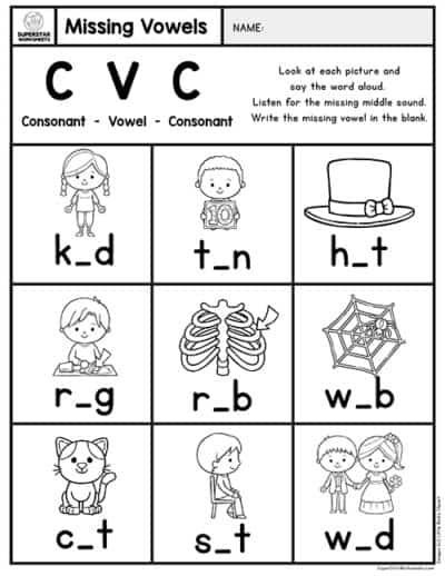 Kindergarten CVC Worksheets Superstar Worksheets