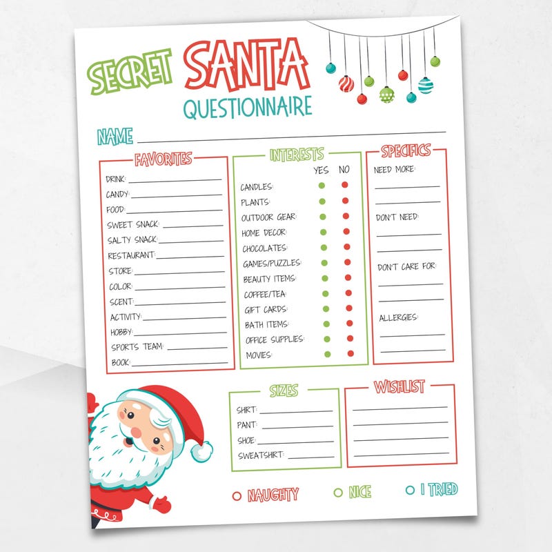 Secret Santa Questionnaire Printable