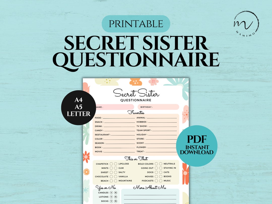 Here are some of the images for Free Printable Secret Sister Questionnaire that we found in our website database.