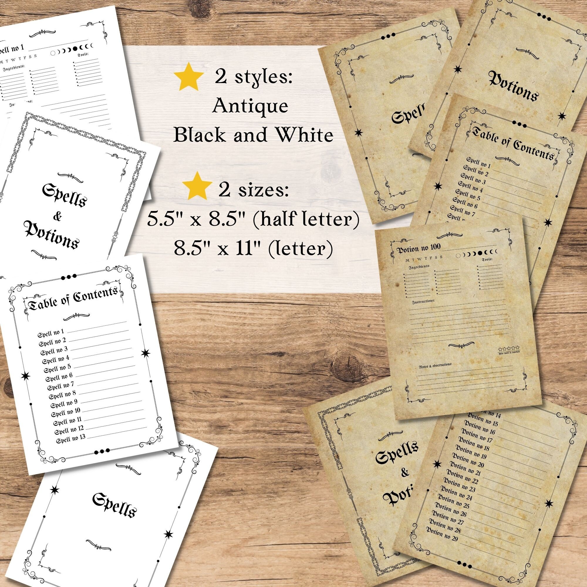 Blank Book of Shadows Pages Spells and Potions Witchcraft Printable