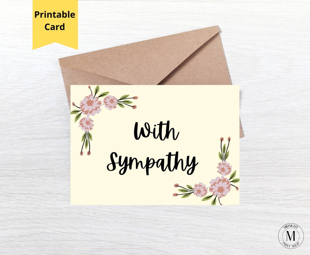 With Sympathy Card Printable Floral Condolence Card Instant Download