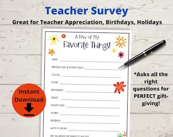 Teacher Favorite Things Survey Printable Instant Download Teacher