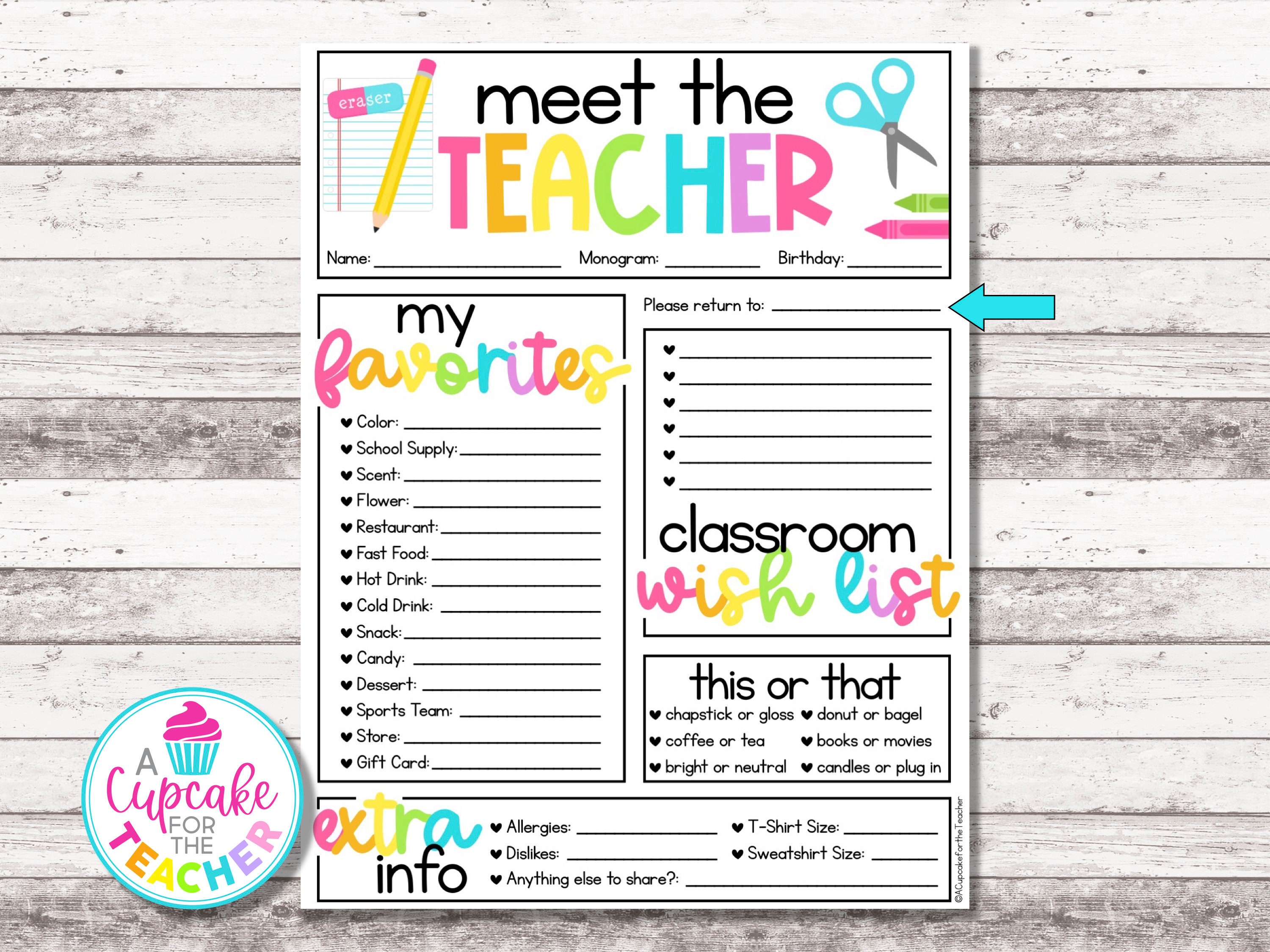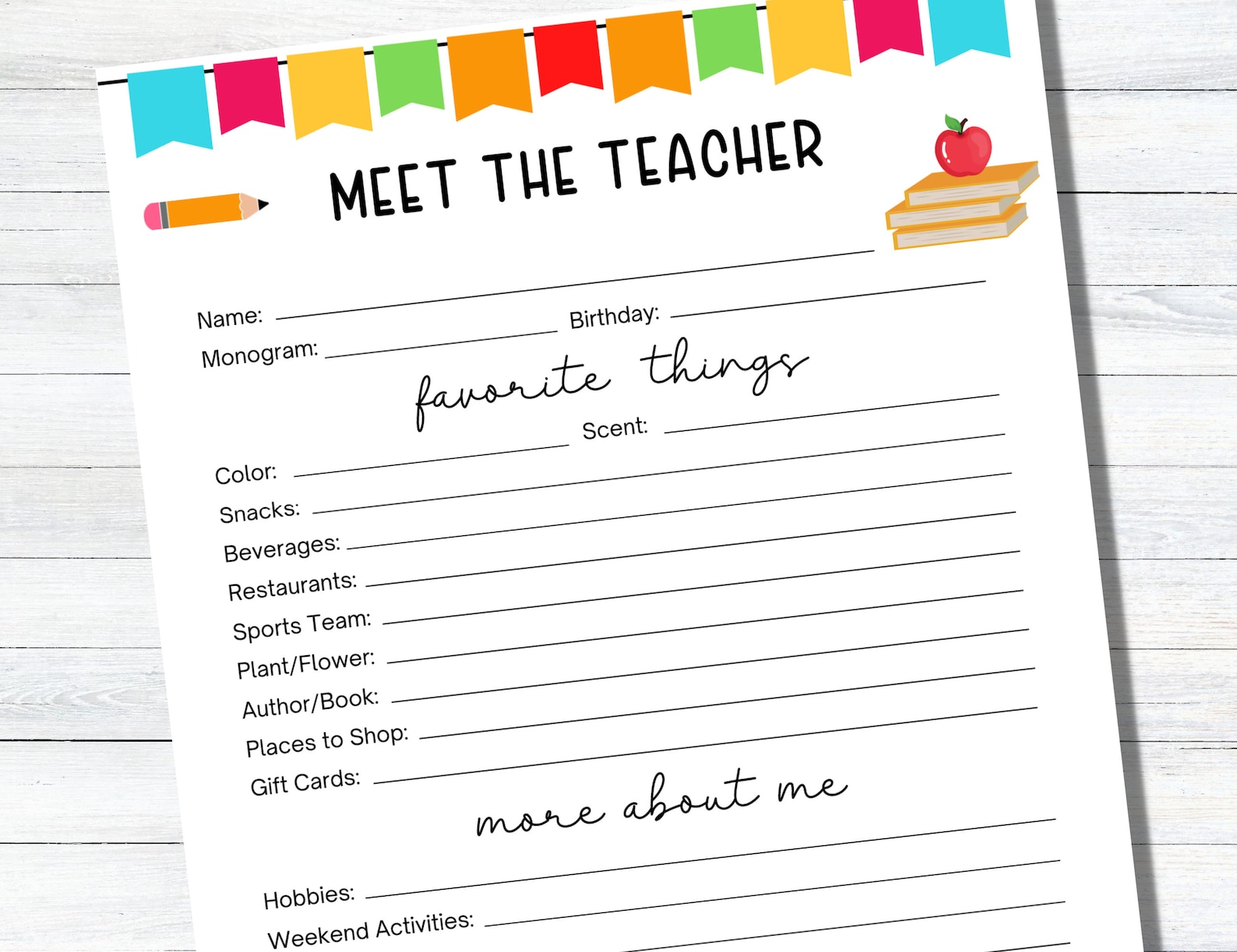 Back to School Teacher Favorite Things Survey Meet the Teacher