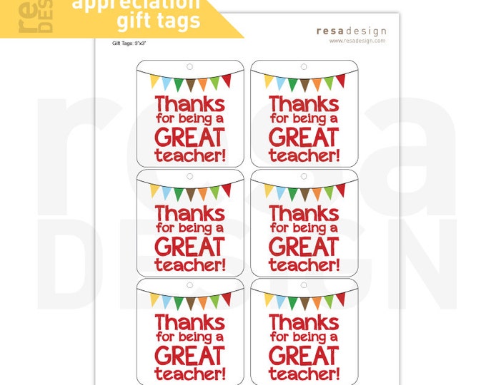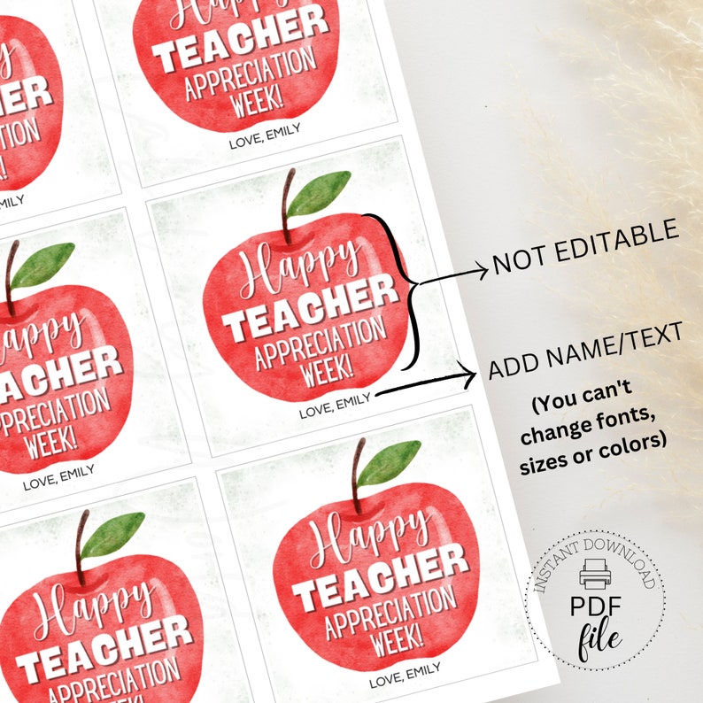 Teacher Appreciation Week Gift tags instant download Teacher Etsy