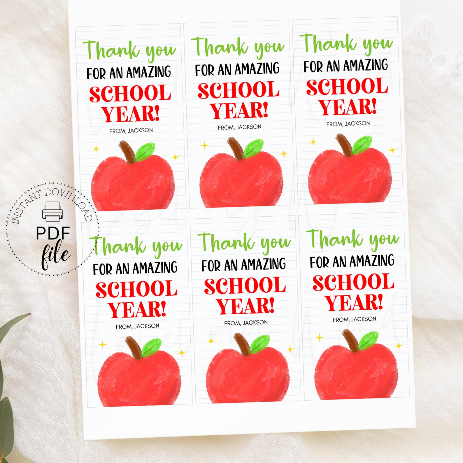 Printable End of School Teacher Appreciation Gift Tag Personalized