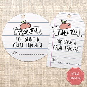 Teacher Appreciation Printable Tags Instant Download Teacher Etsy