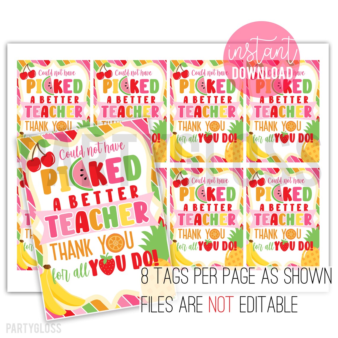 Teacher Appreciation Printable Tag Picked Better Teacher Etsy