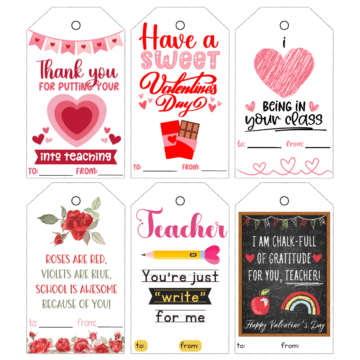 Free Valentines day gift tags for Teachers from