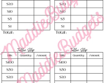 Printable Teller Slips Cash Breakdown for Cash Envelopes Etsy