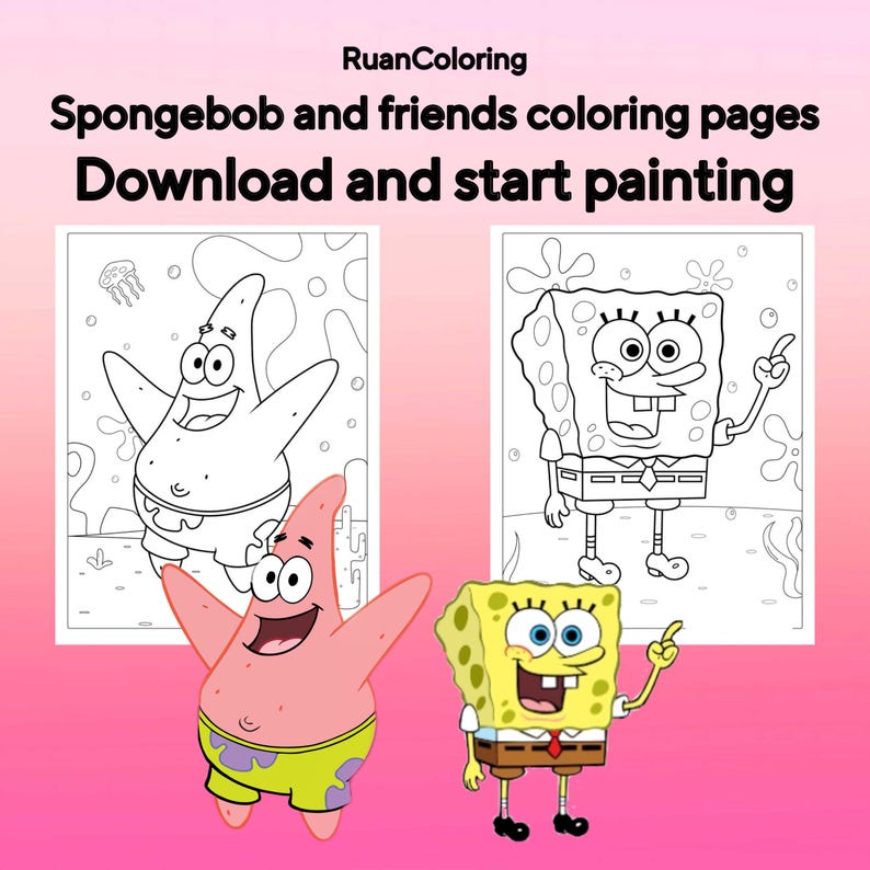 Spongebob and Patrick Star Coloring Pages Printable For Kids by Tazinbooks