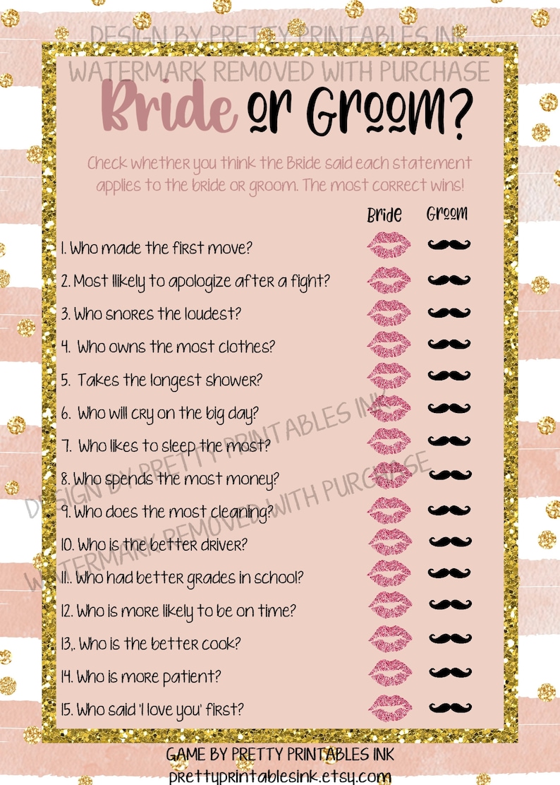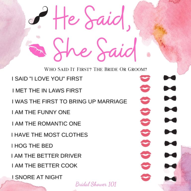 He Said She Said Game For Bridal Shower (FREE) Bridal Shower 101