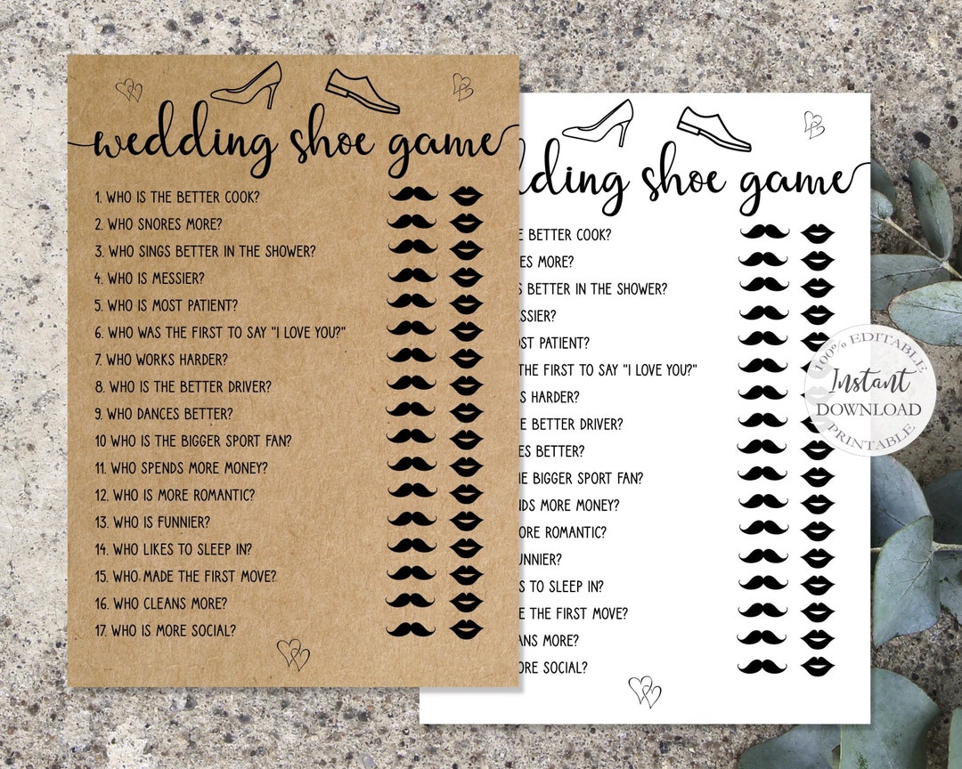 Bridal Shower Game Printable Wedding Shoe Games Editable Bachelorette