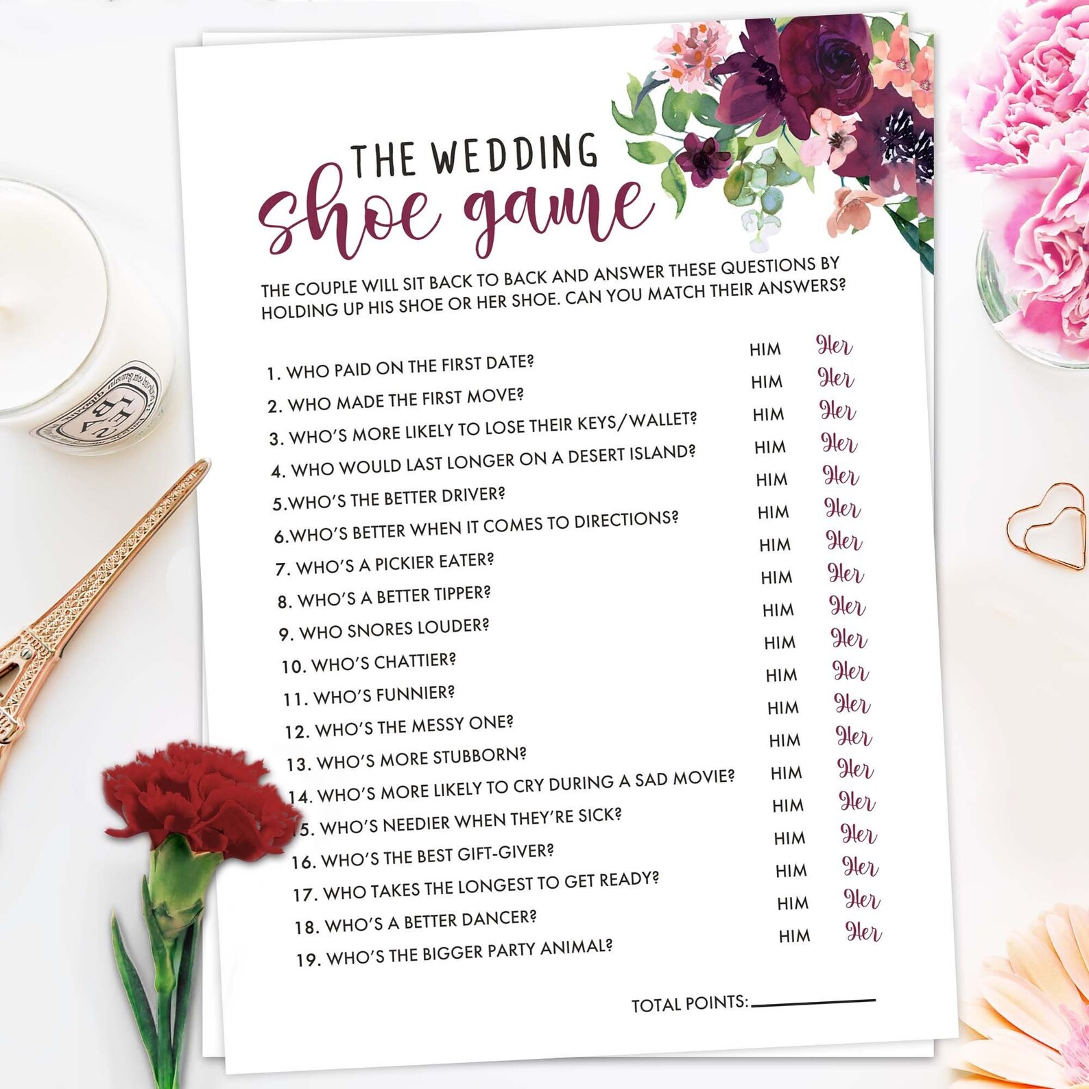 The Wedding Shoe Game Wedding Cards Burgundy Fun Reception Etsy