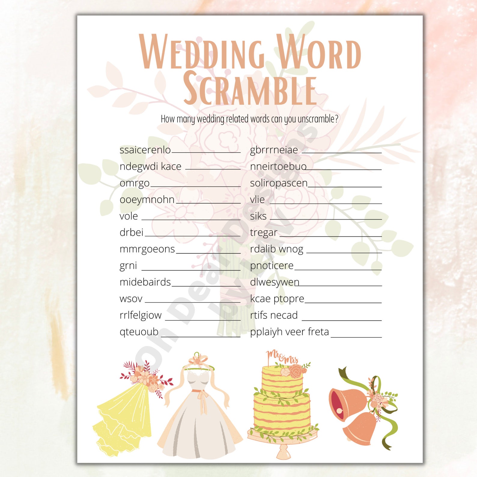 Wedding Word Scramble Printable Bridal Shower Game W/ Answer Key