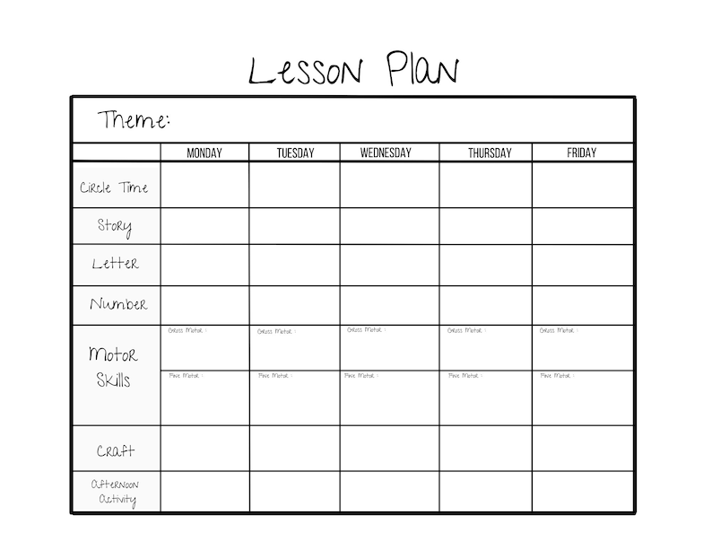 Printable Weekly Lesson Plan Template Preschool/kindergarten Etsy UK