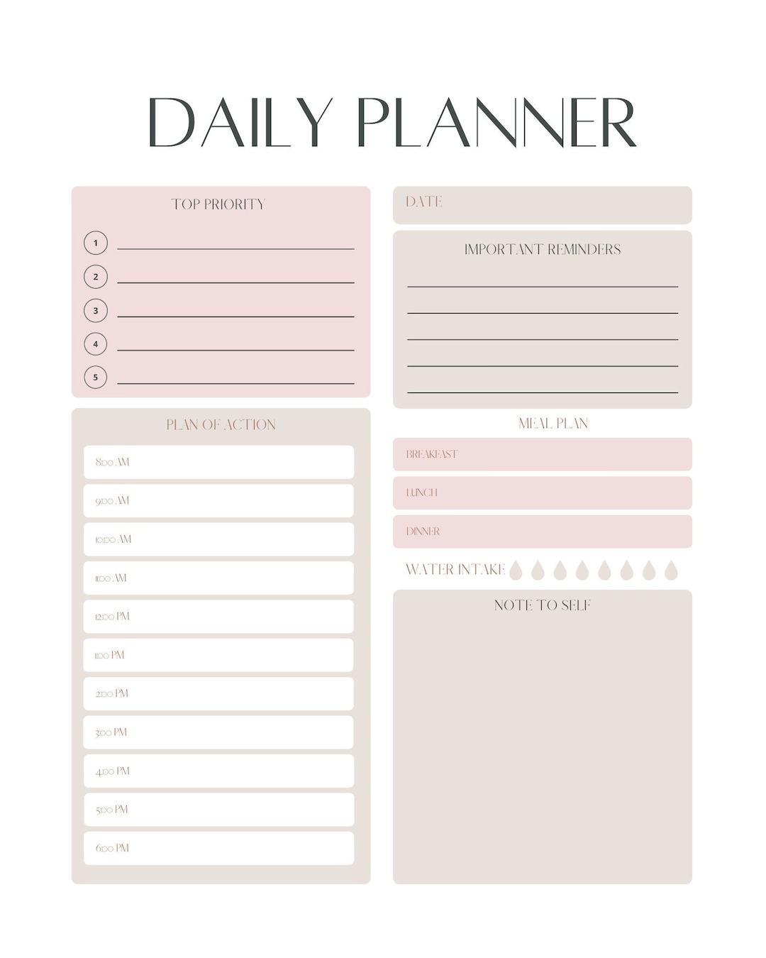 Daily Planner Digital Planner Printable Planner Personal Planner
