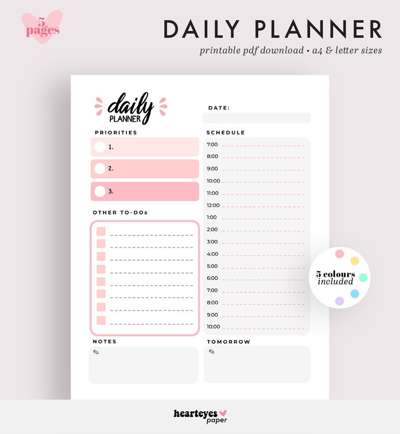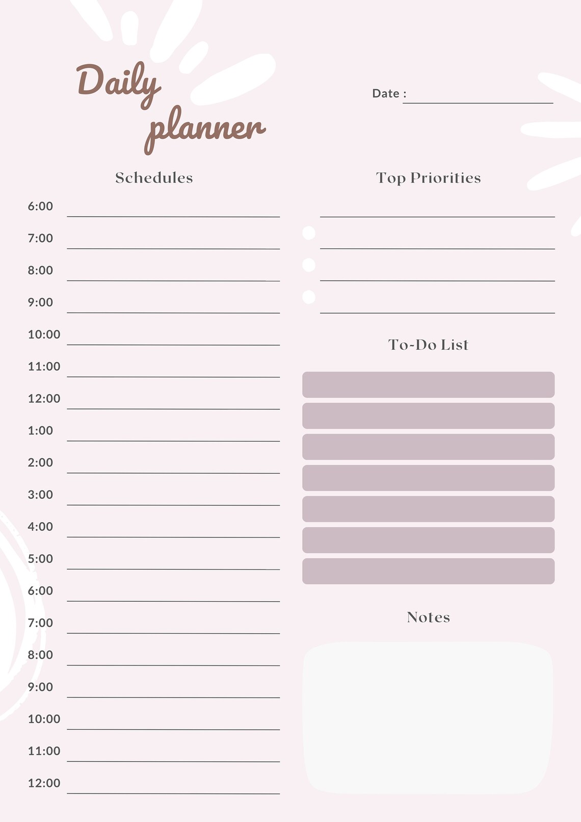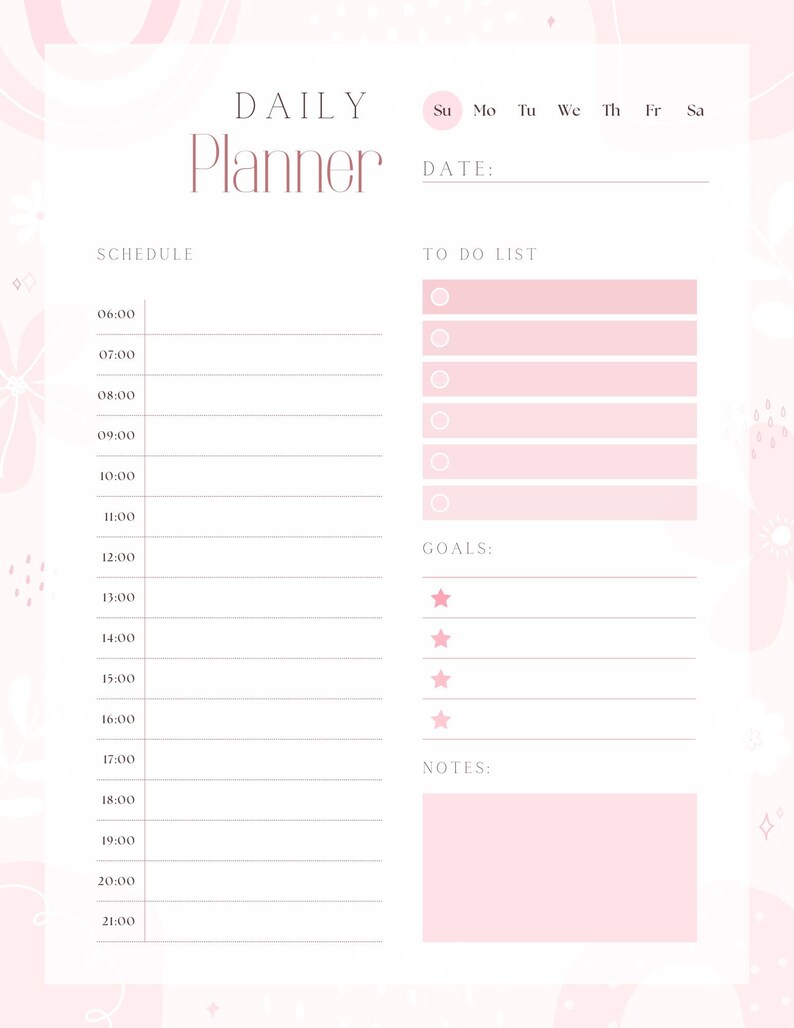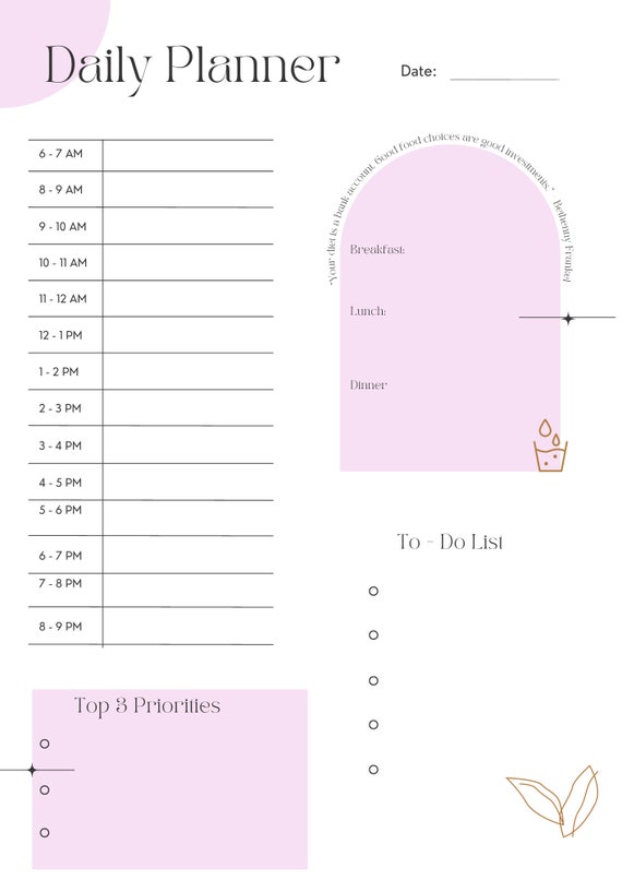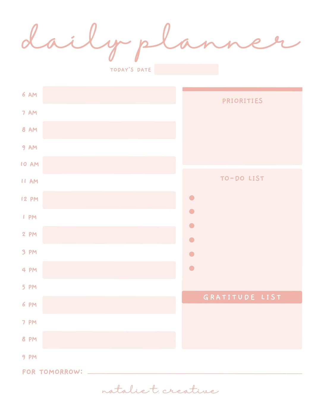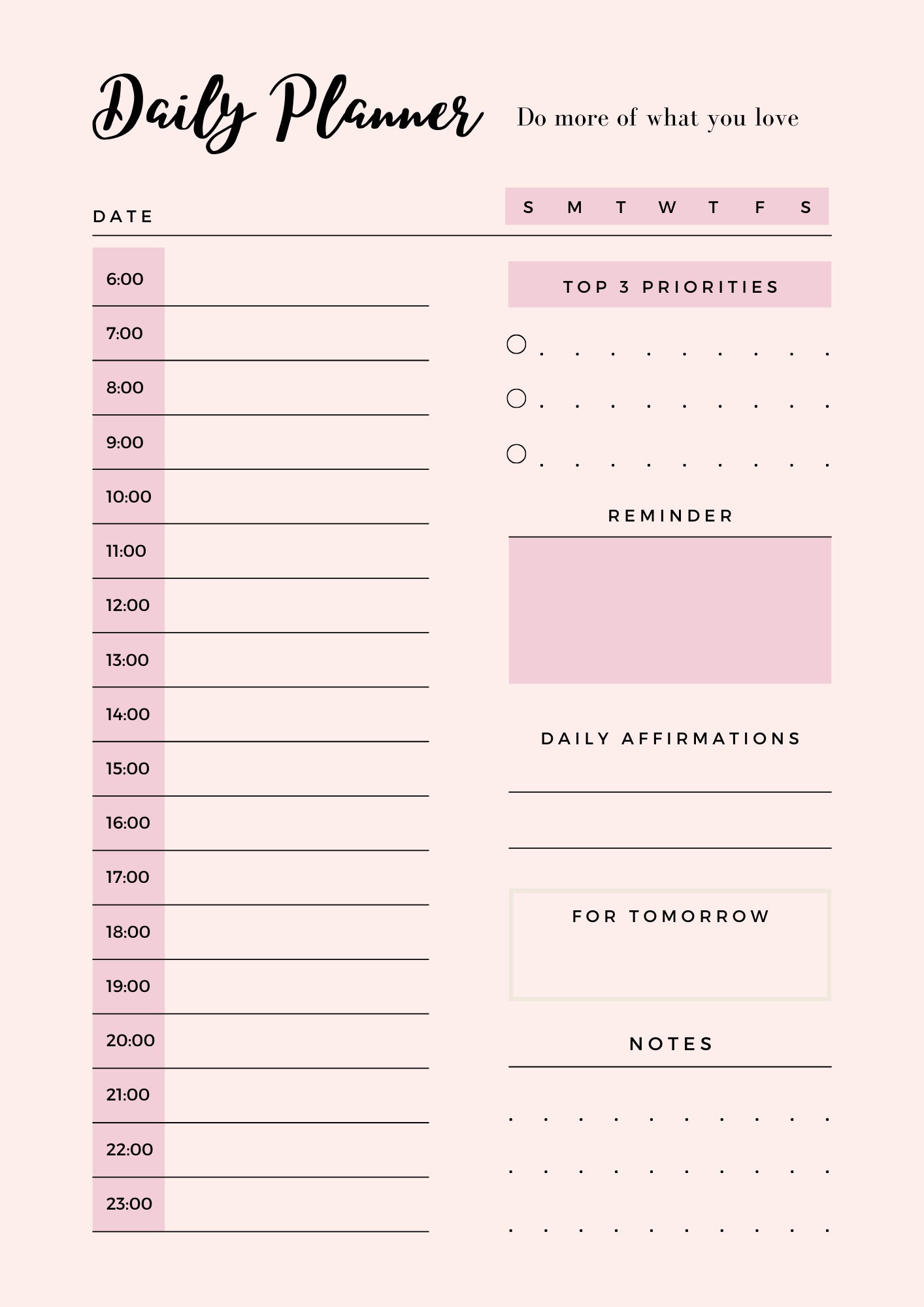 Printable Daily Planner Page Hourly Planner Pink Planner Download