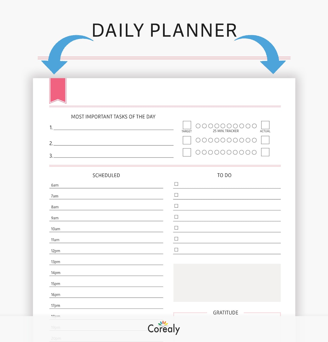 Printable Daily Planner Fillable PDF Productivity Planner Download