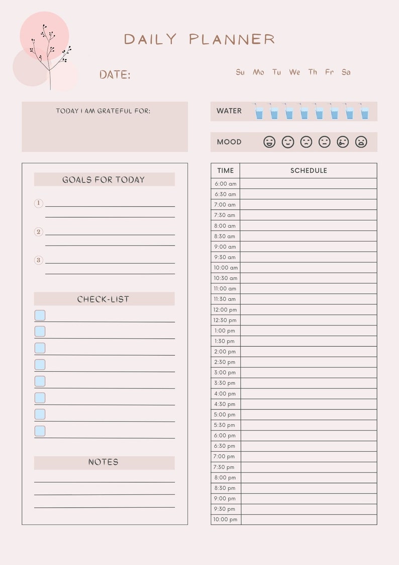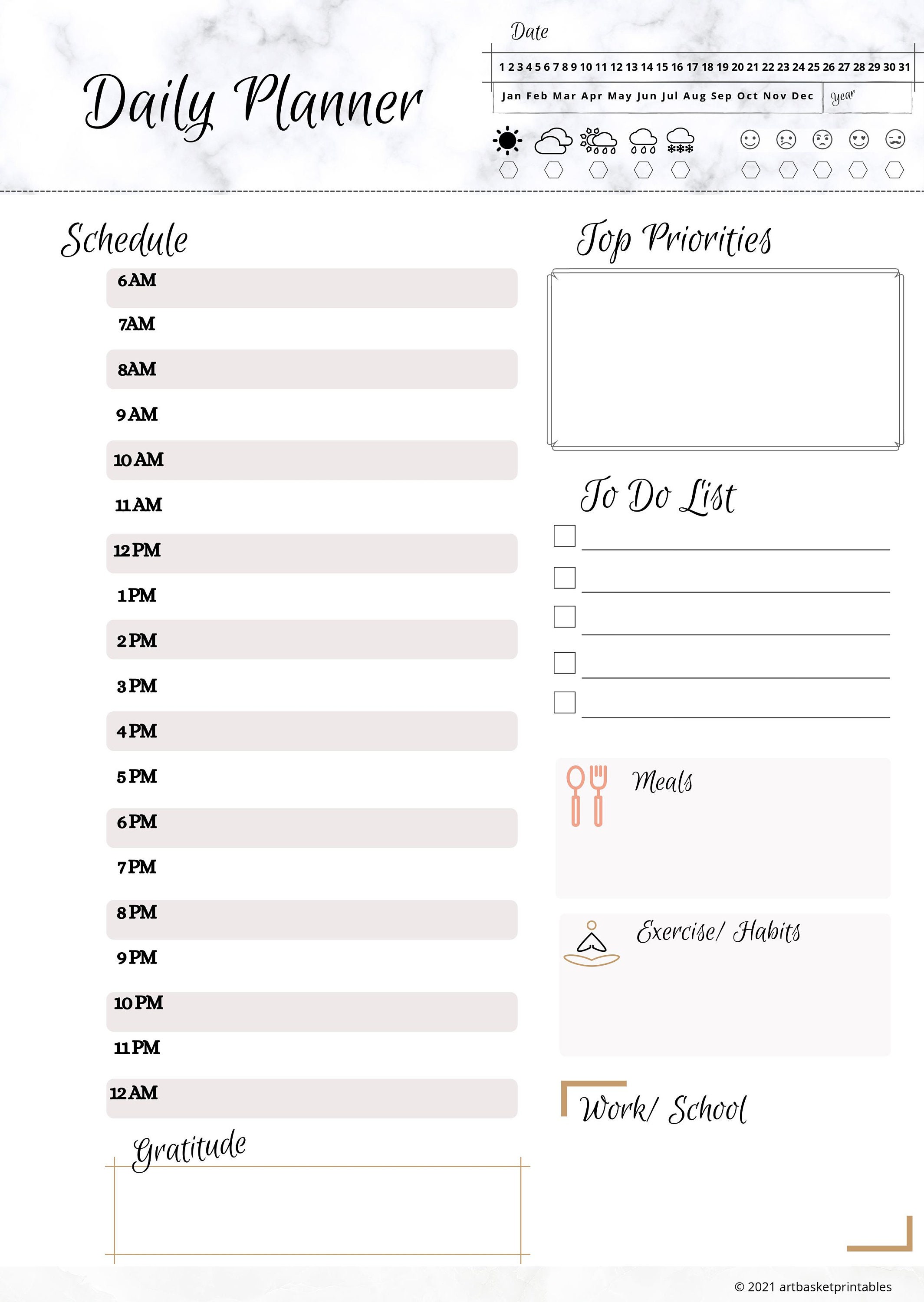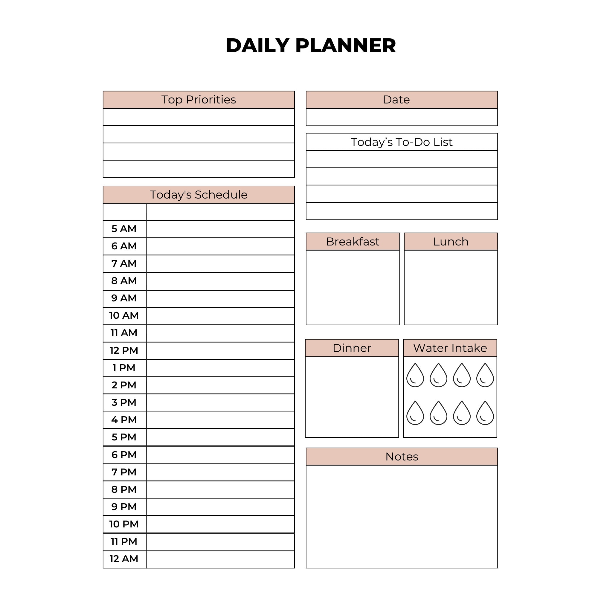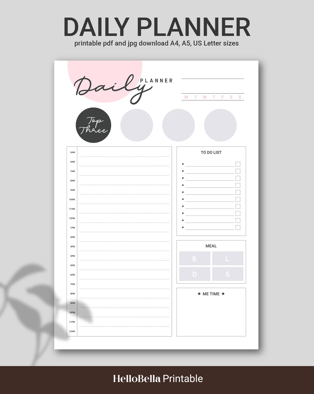 Daily Planner Printable Daily Planner Digital Daily Planner Hourly