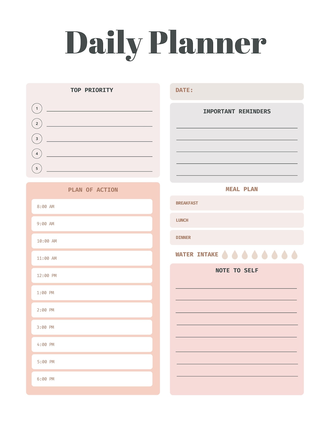 Daily Planner Printable Template Personal Planner Planner Inserts