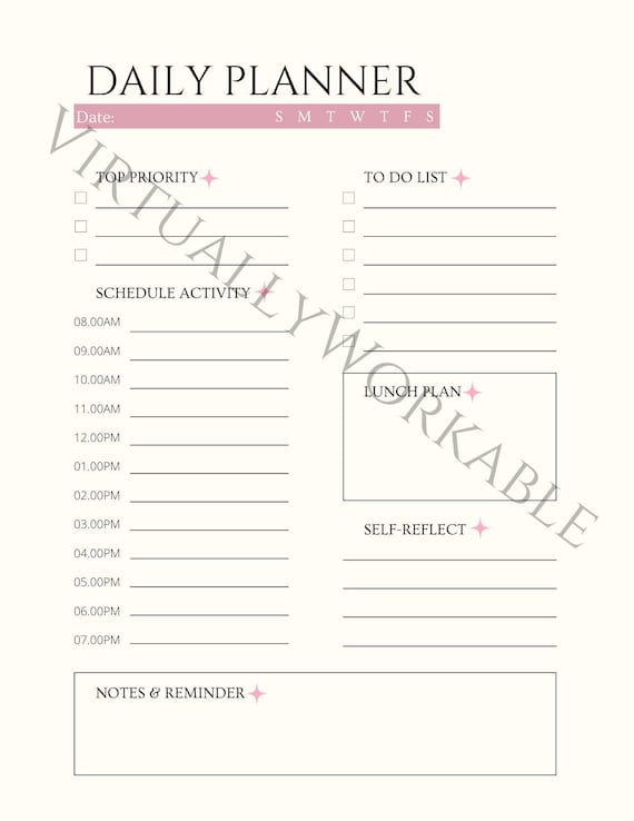 Printable Daily Planner Digital Download PDF JPG Etsy