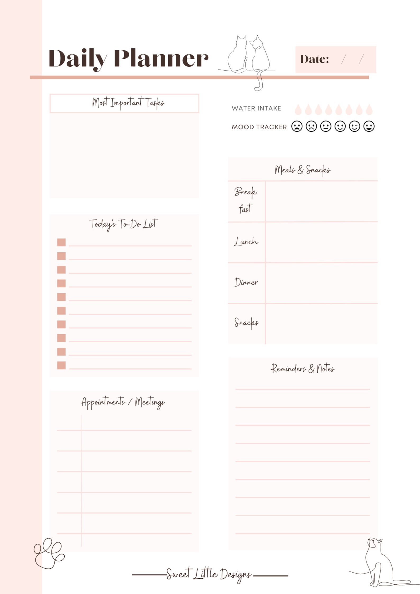 Daily Printable Planner Cat Themed Printable Meal Tracker Mood Tracker