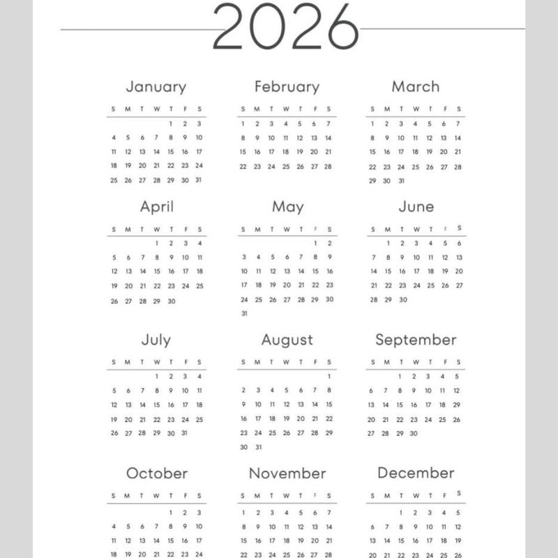 Free Printable 2026 Yearly Calendar DIY Projects Patterns Monograms