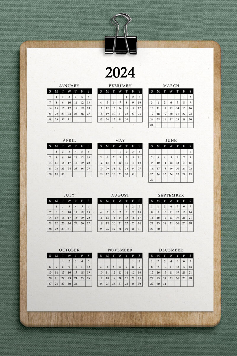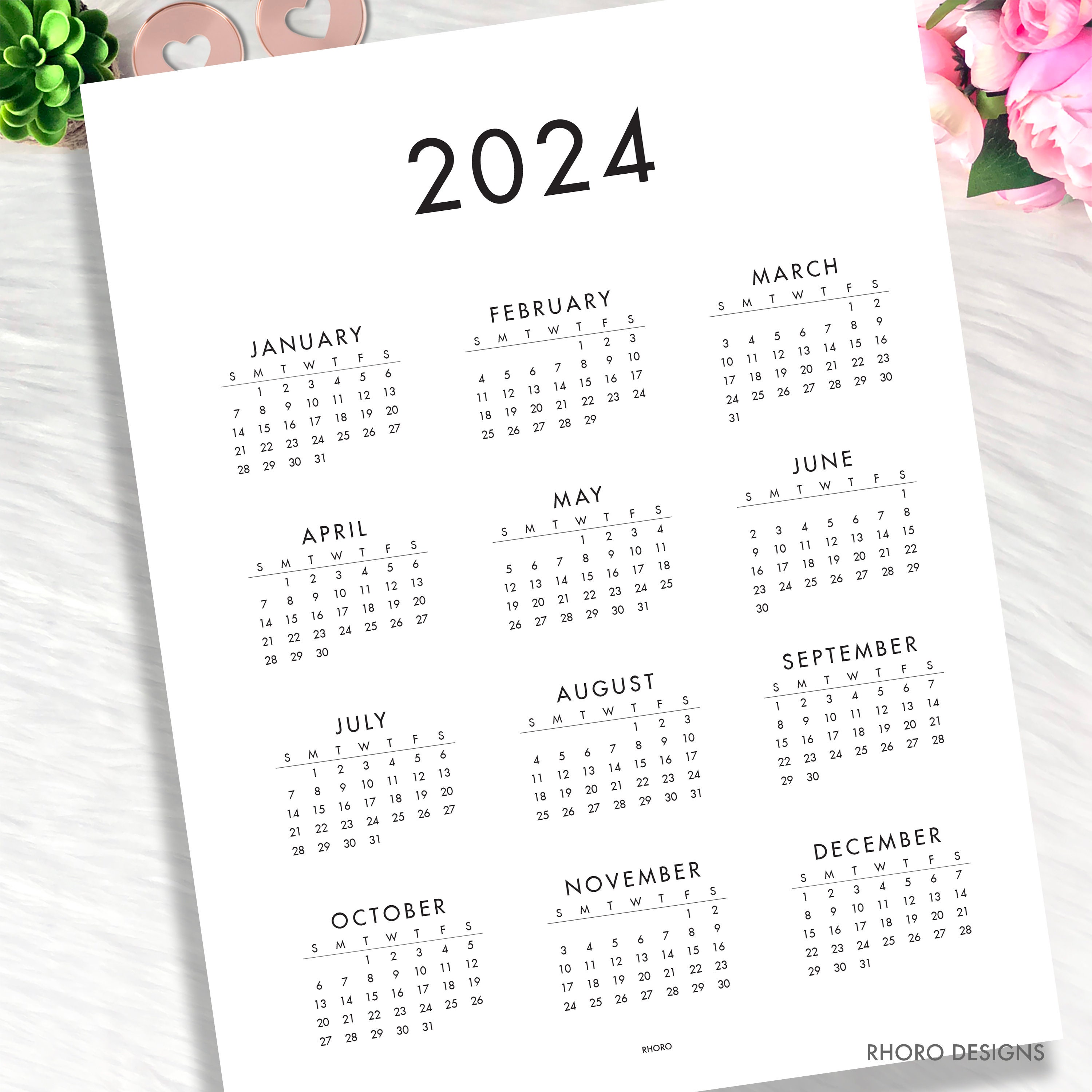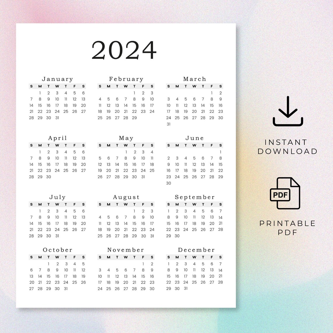 Simple 2024 Calendar Printable 2024 Calendar Yearly Overview