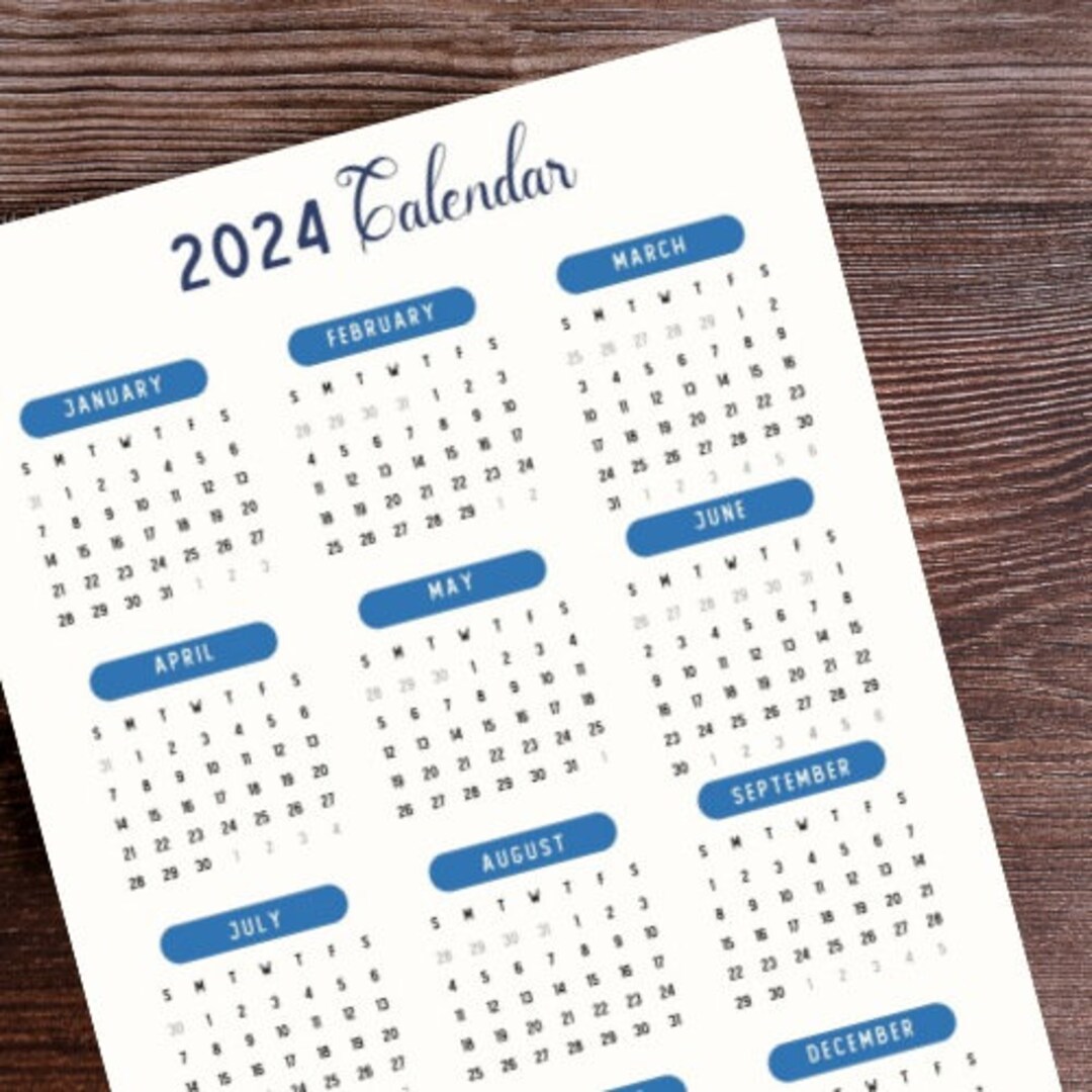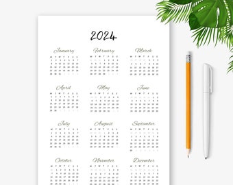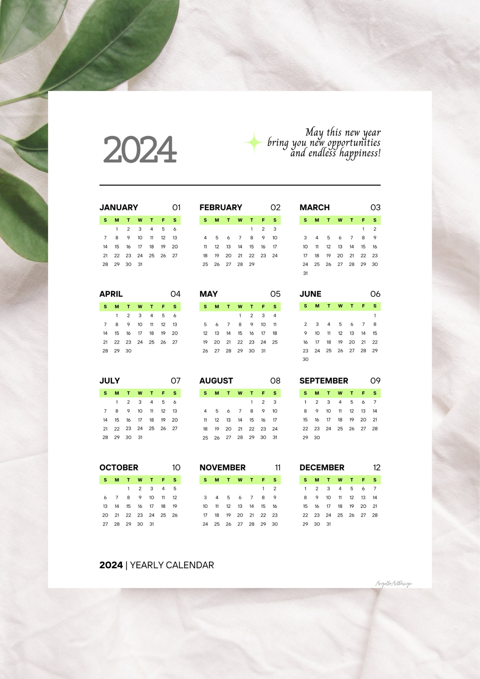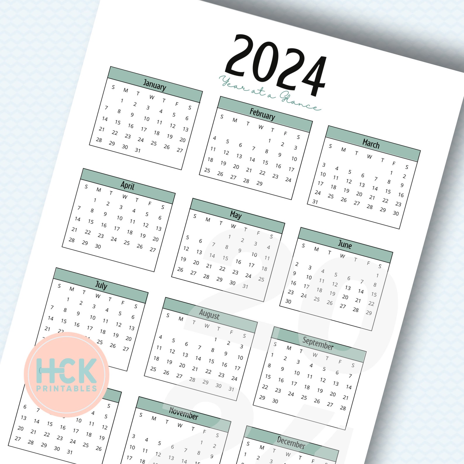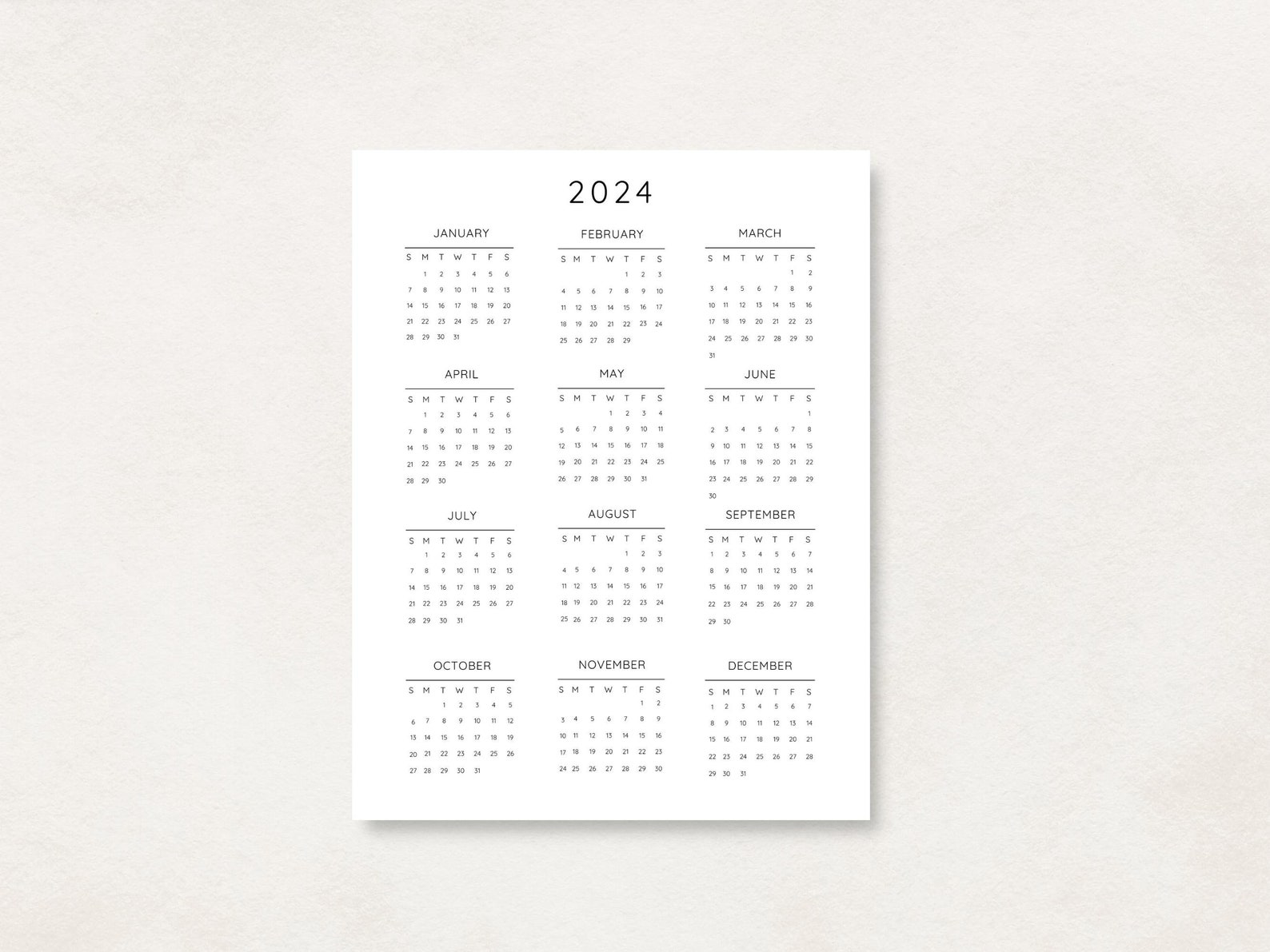 2024 Printable Calendar Calendar 2024 Year at a Glance A4 A5 US