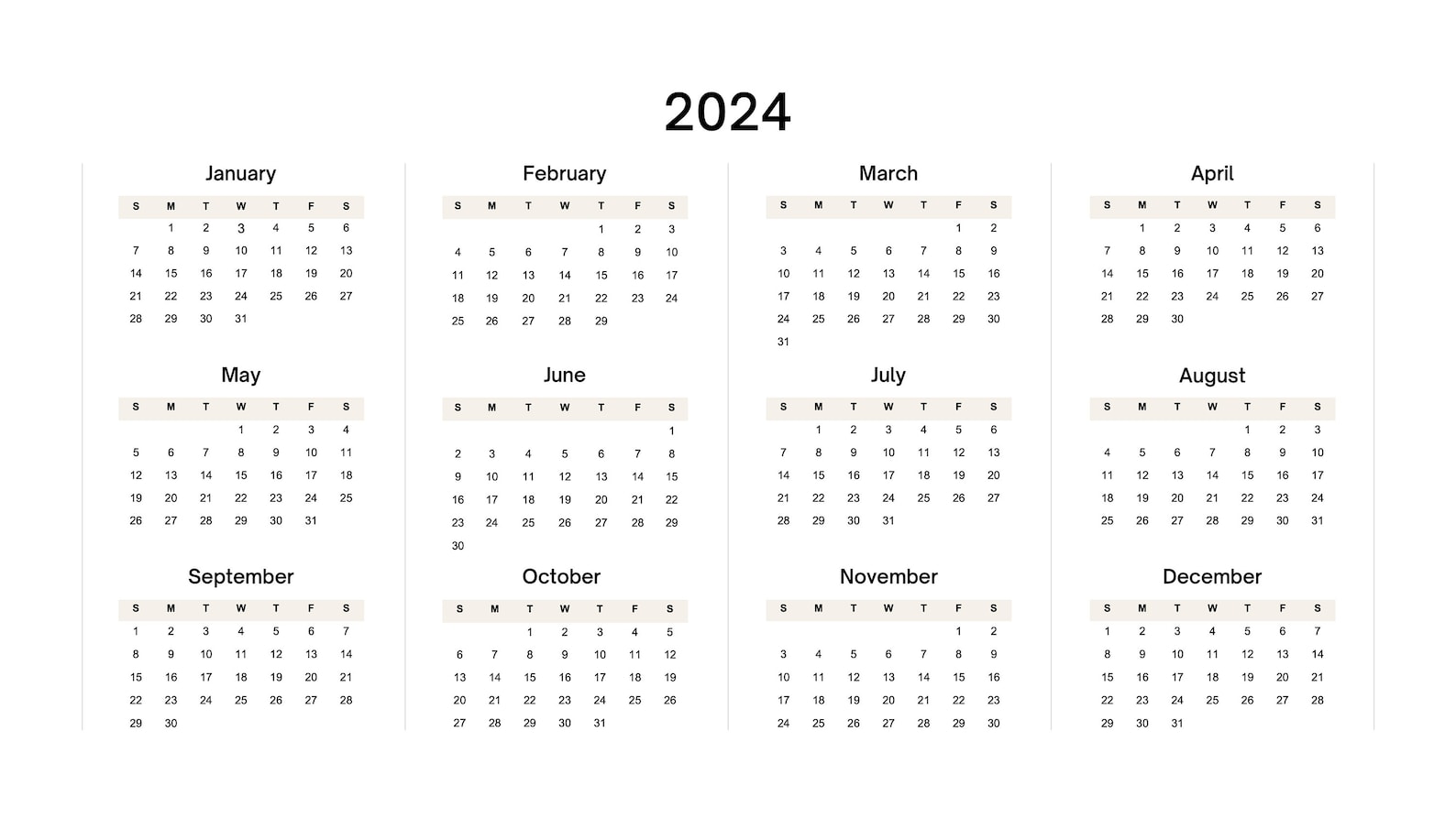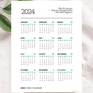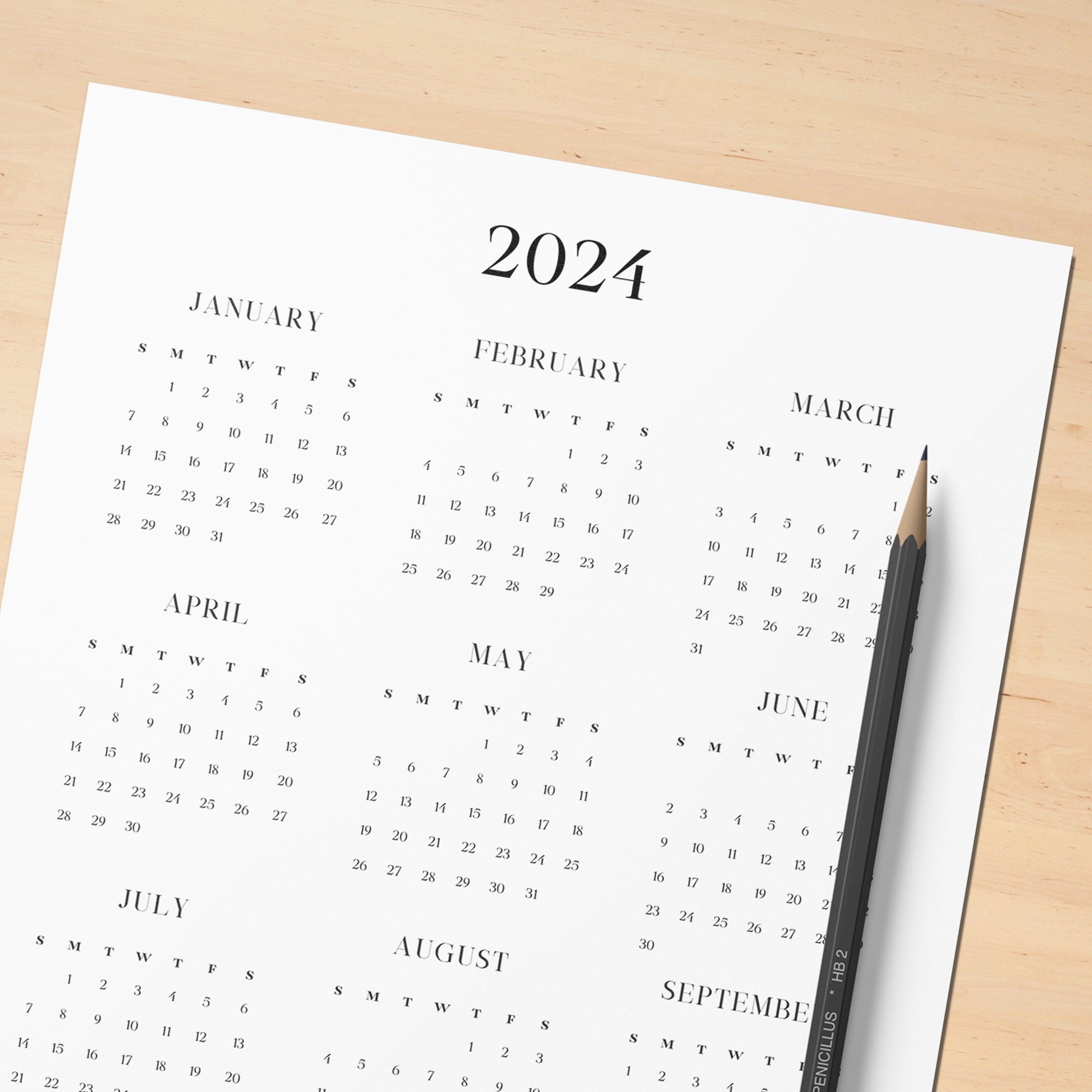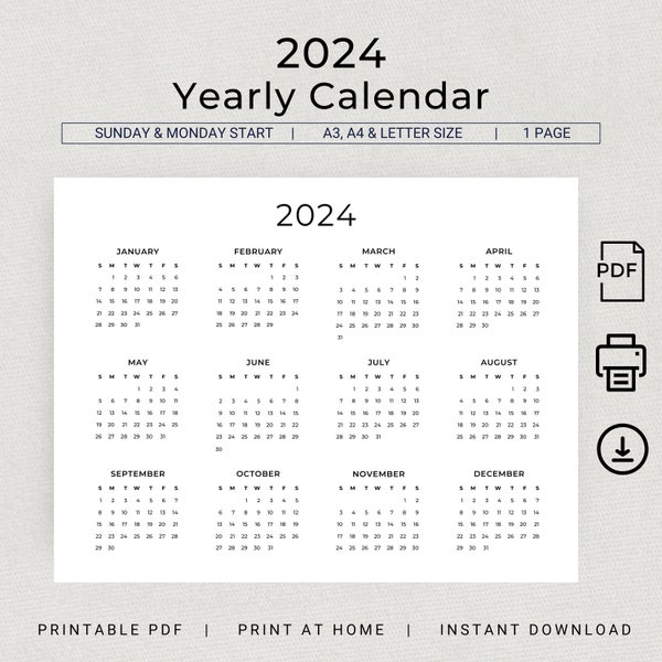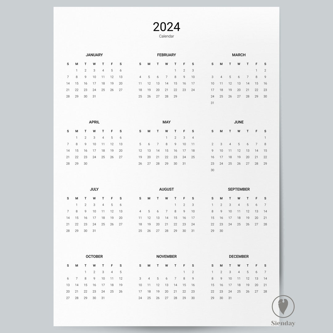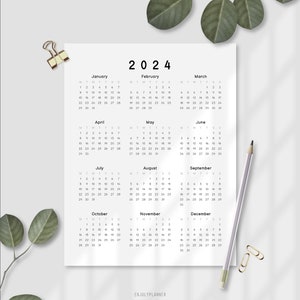 2024 Yearly Calendar Printable Minimalist Design A3 A4 Letter Wall