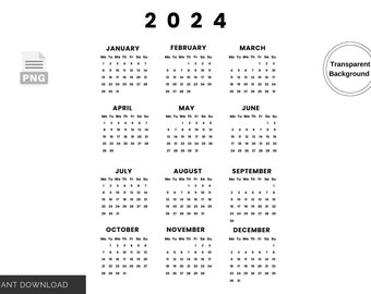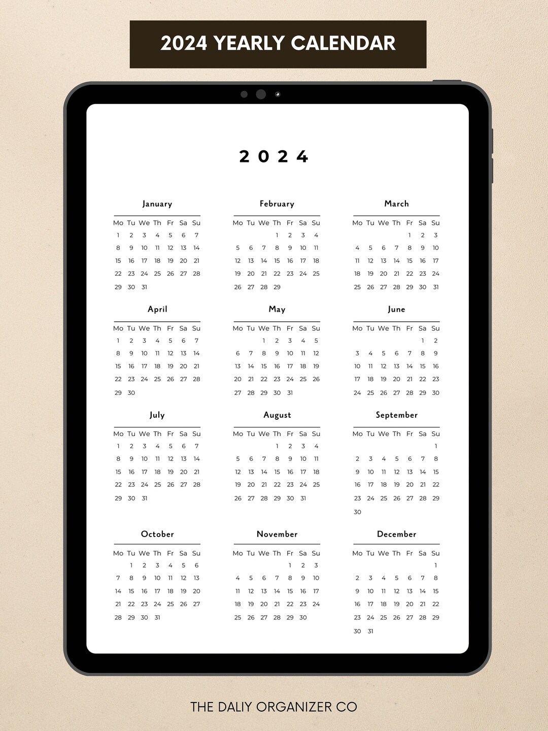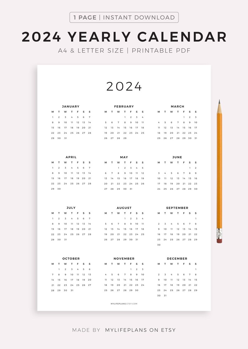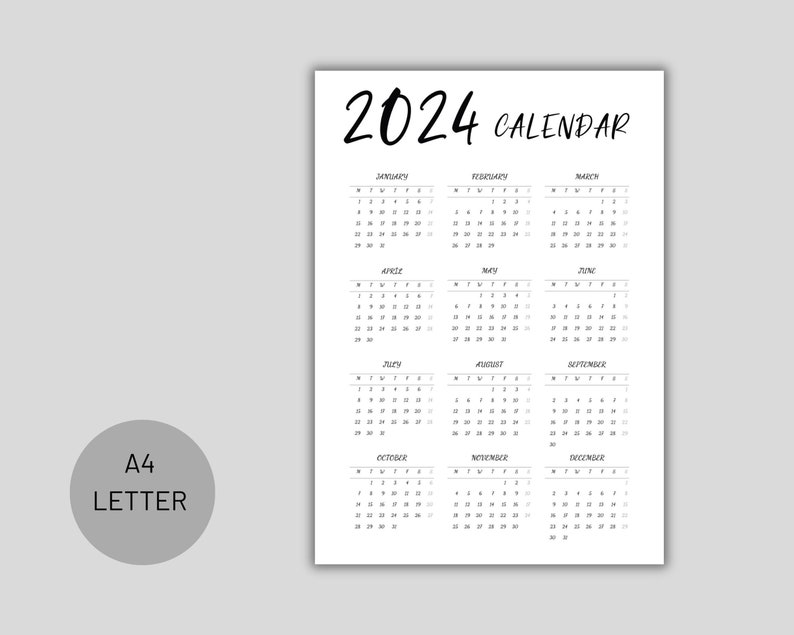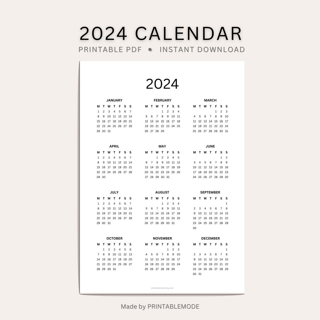 2024 Year Calendar Printable Yearly Wall Calendar Desk Etsy