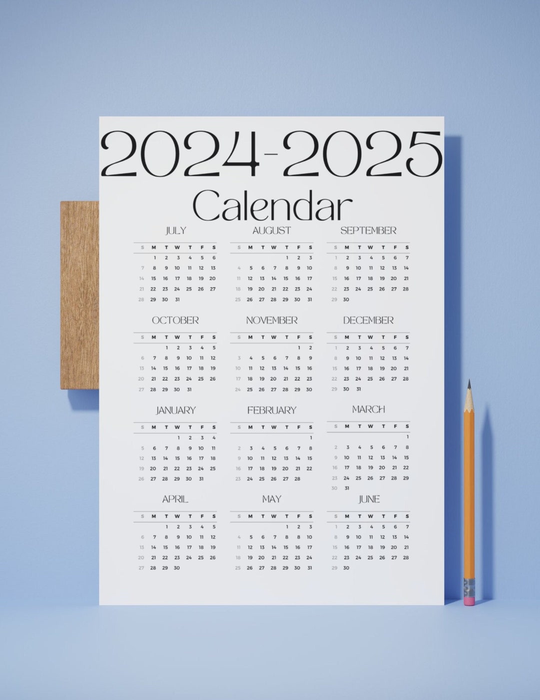 2024 2025 Calendar Yearly Calendar Printable 2024 25 Printable